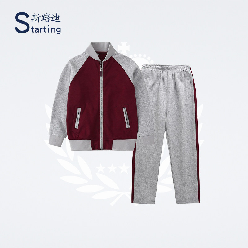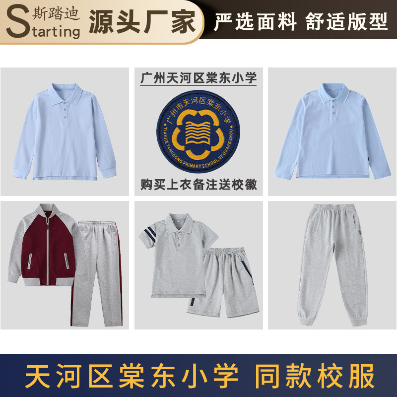 📚 广州市天河区棠东小学同款校服红灰色运动棒球服套装浅灰短袖夏装