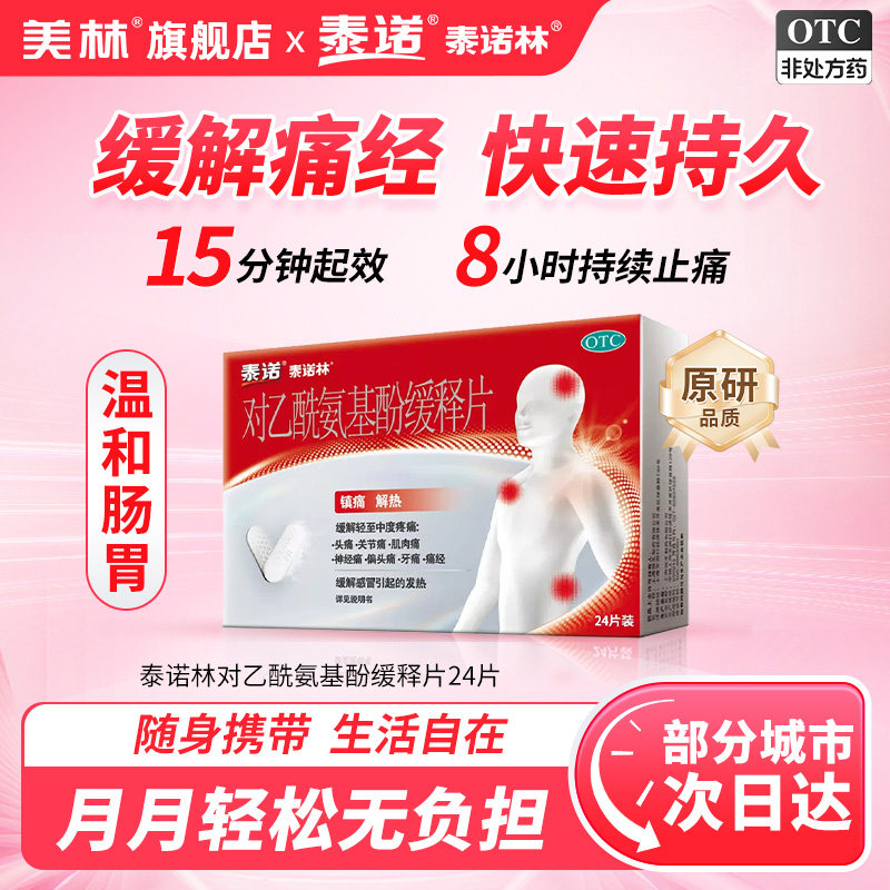📚 泰诺林对乙酰氨基酚缓释片感冒退烧药痛经原研药腹痛牙痛偏头痛