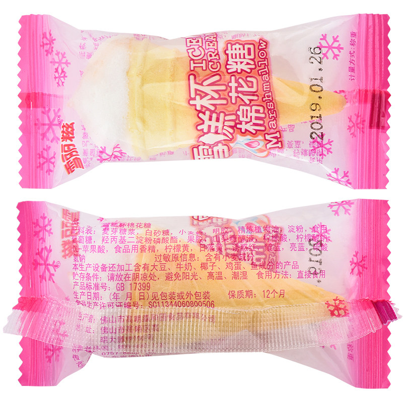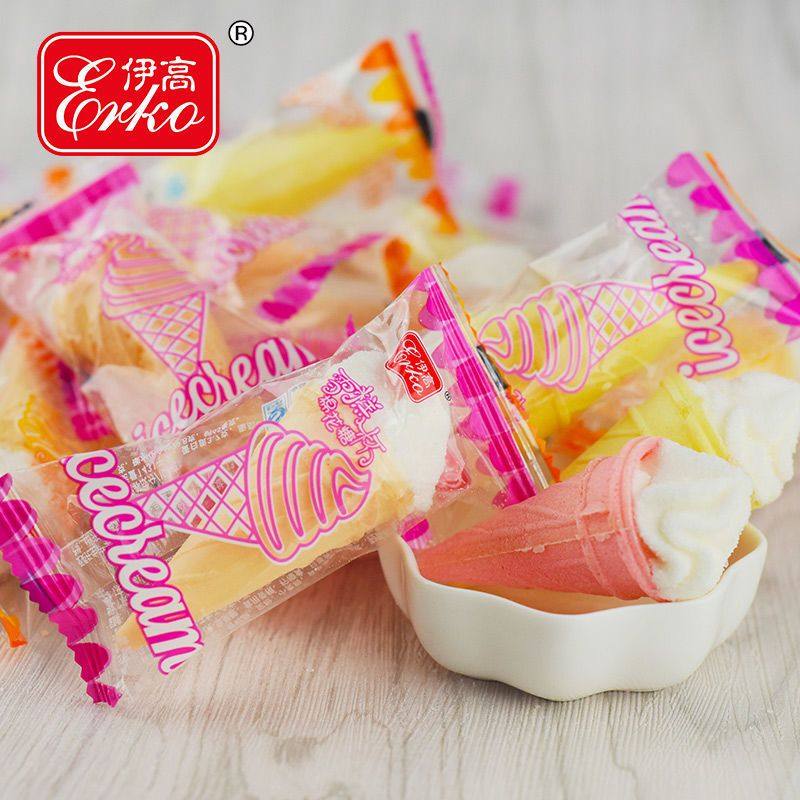 📚 伊高雪丽糍棉花糖冰激凌甜筒冰淇淋雪糕杯500g结婚喜糖散装糖果