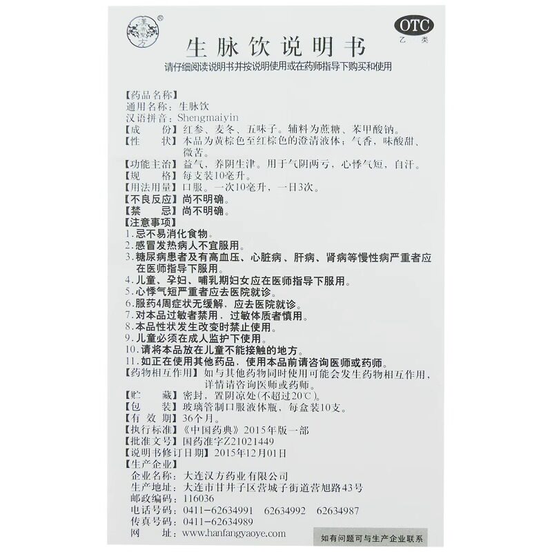 📚 汉方 生脉饮红参方10ml*10支/盒益气养阴气阴两亏自汗心悸气短
