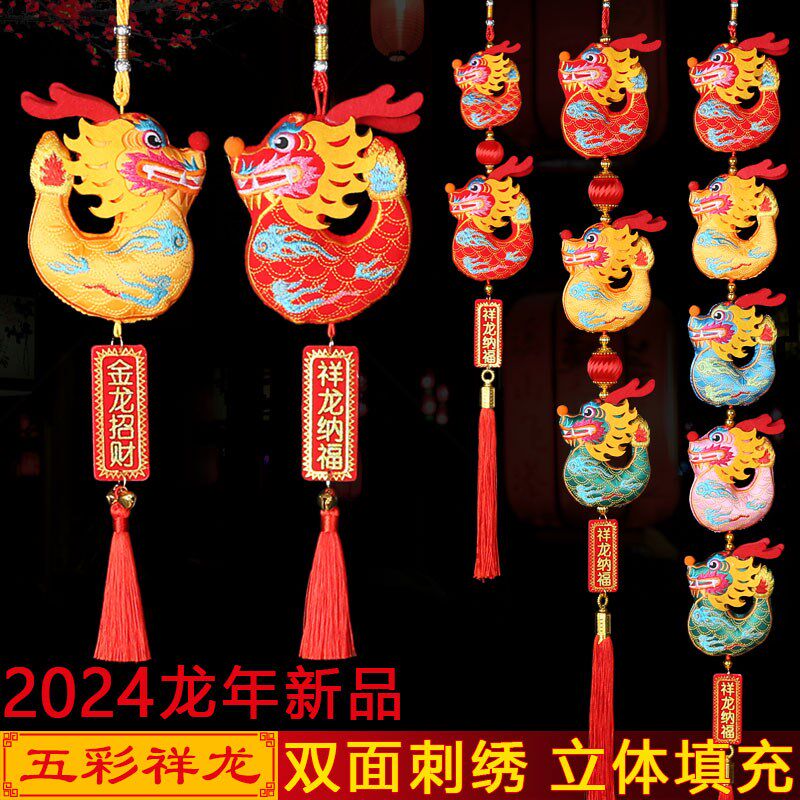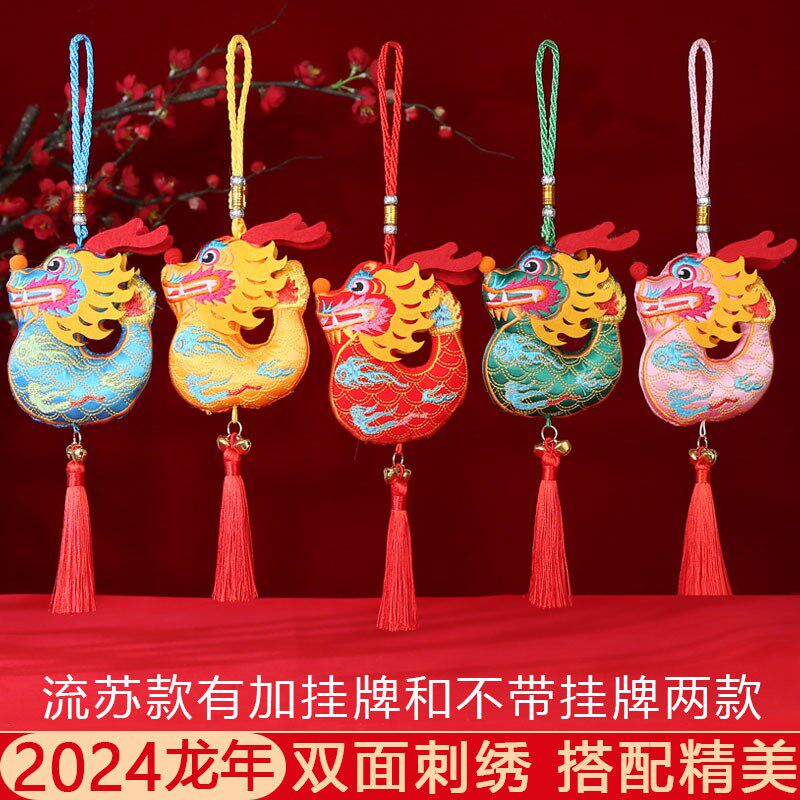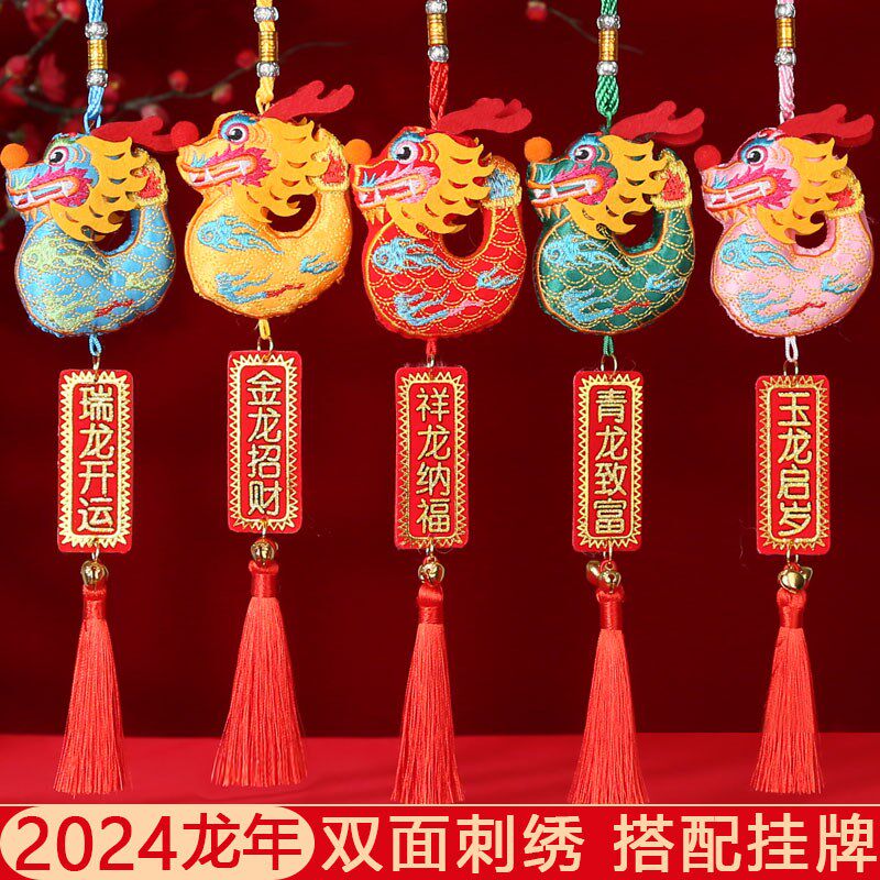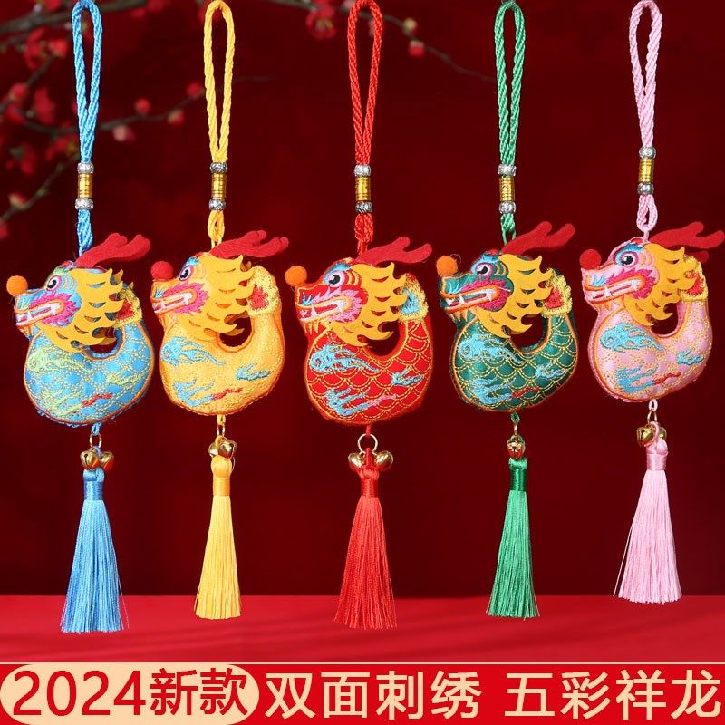 📚 双面刺绣龙汽车挂件生肖龙车内挂饰布艺绣花龙年后视镜车载吊饰