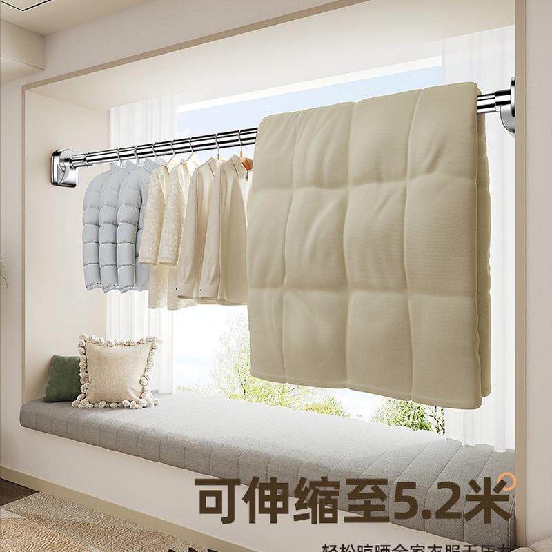 📚 晾衣杆伸缩免打孔阳台顶装凉衣架固定式撑杆可晒衣挂衣窗帘杆