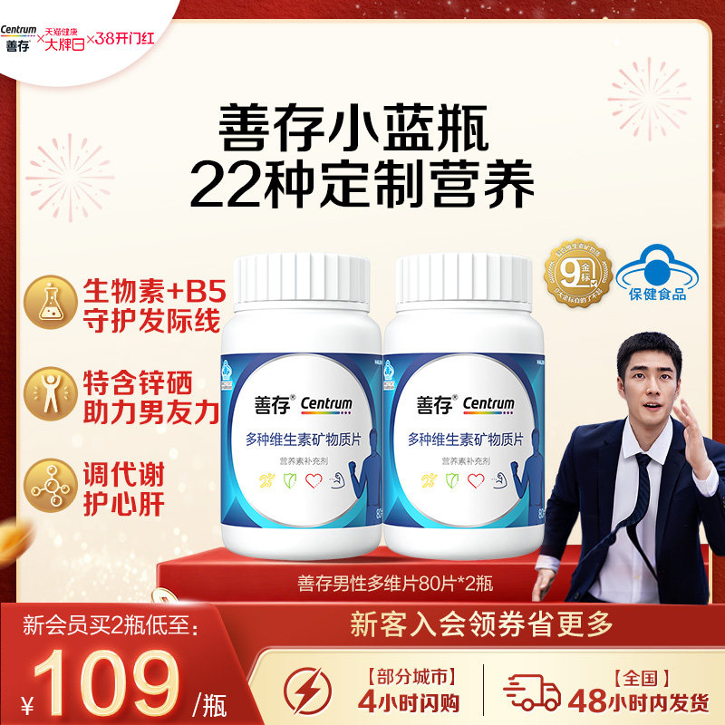 📚 善存蓝瓶男性复合多种维生素b族矿物质复合片22种营养蓝帽认证