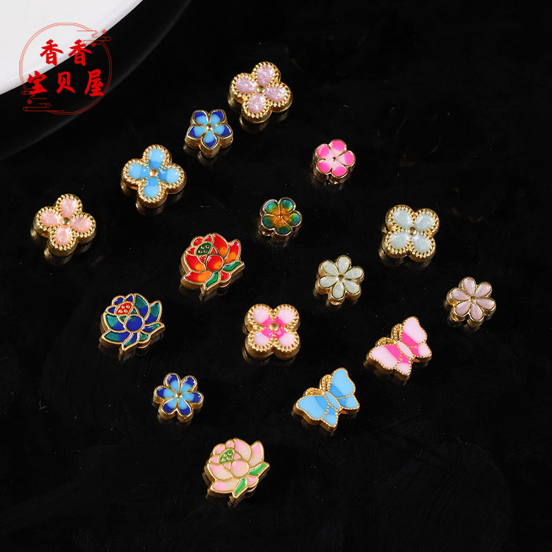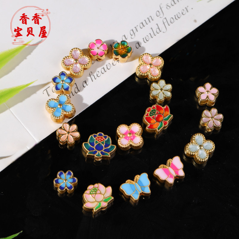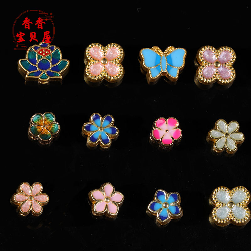 📚 古法金滴油荷花蝴蝶隔珠 吊坠项链手链配饰diy文玩佛珠手工 配饰
