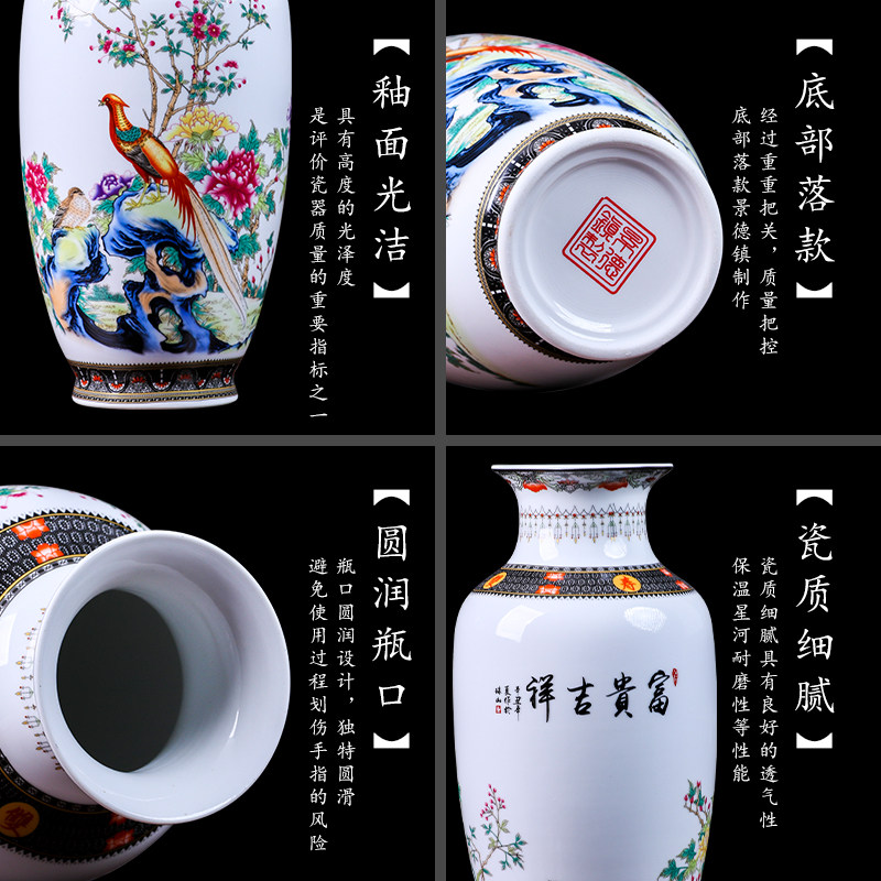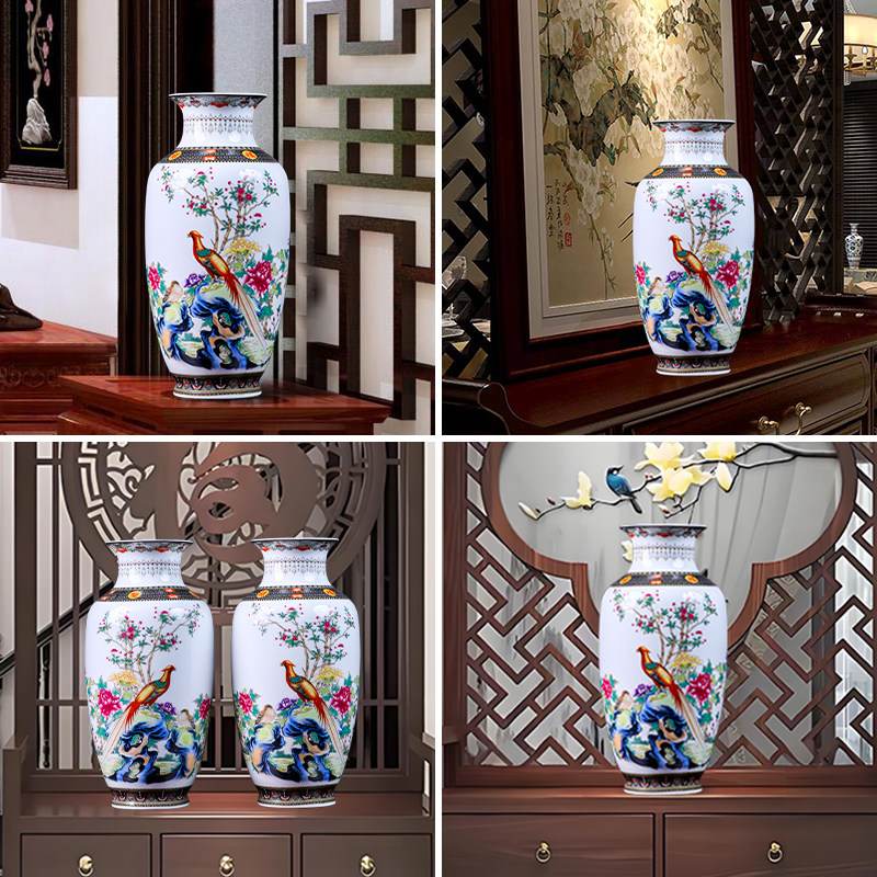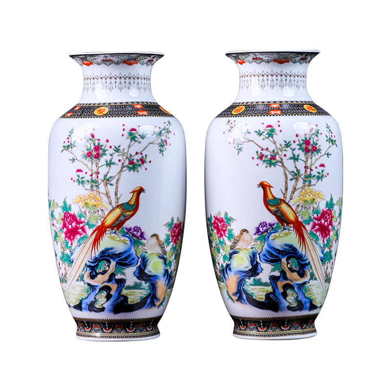 📚 景德镇陶瓷器锦鸡对瓶花瓶摆件客厅插花装饰品新中式家居养富贵竹