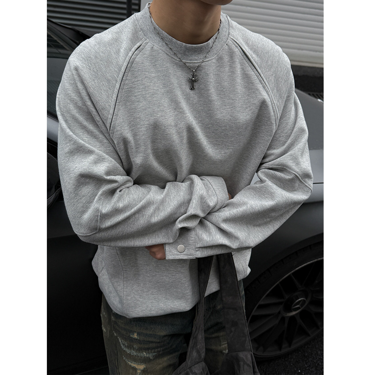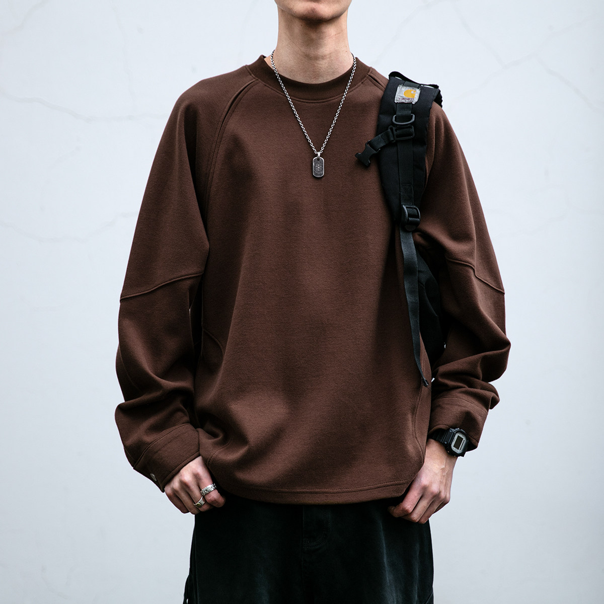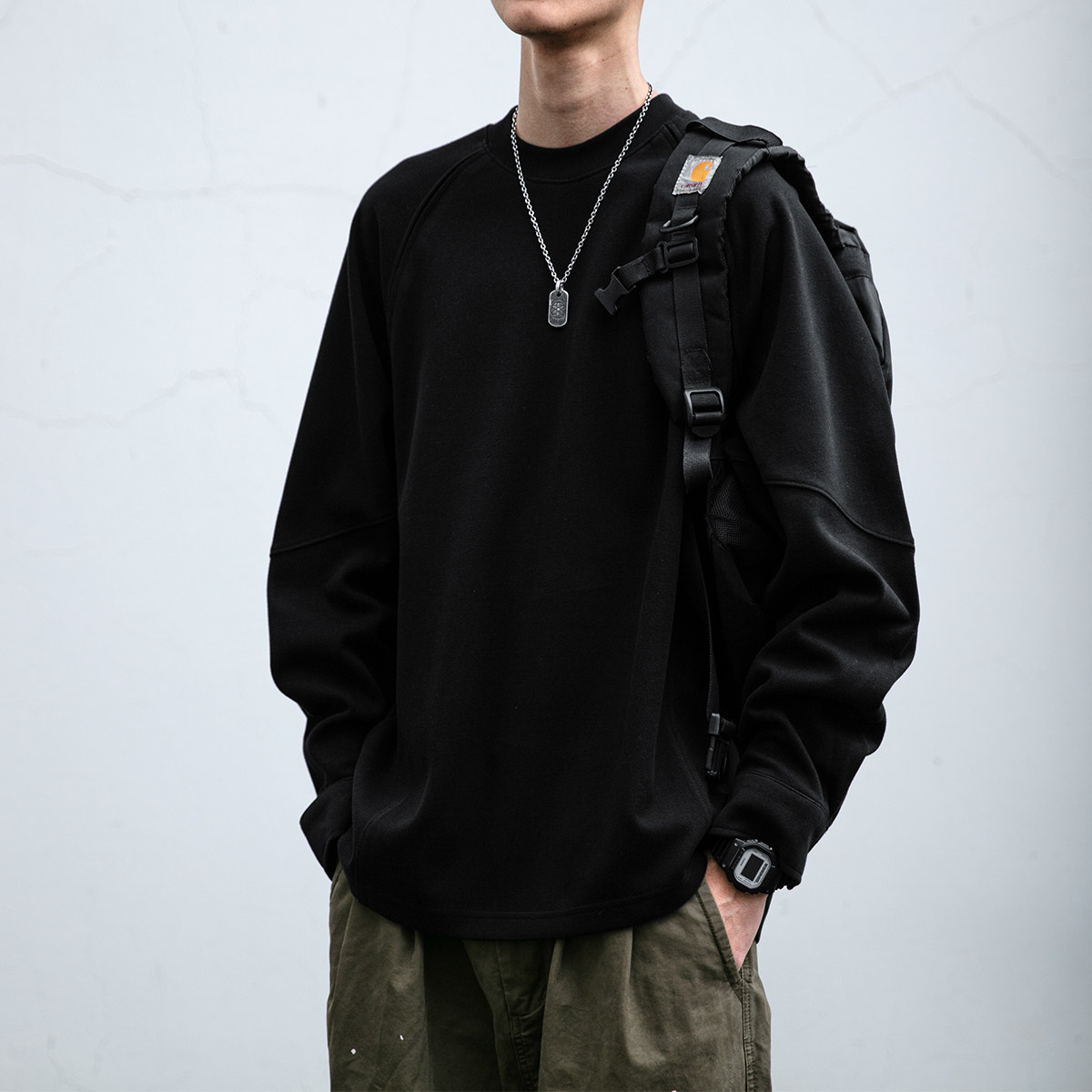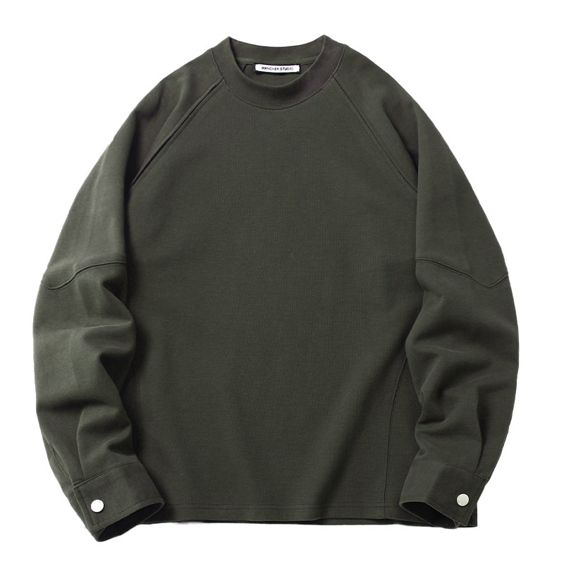 📚 310G菲拉双面水洗插肩袖圆领卫衣男春秋亲肤软糯纯色宽松打底长袖