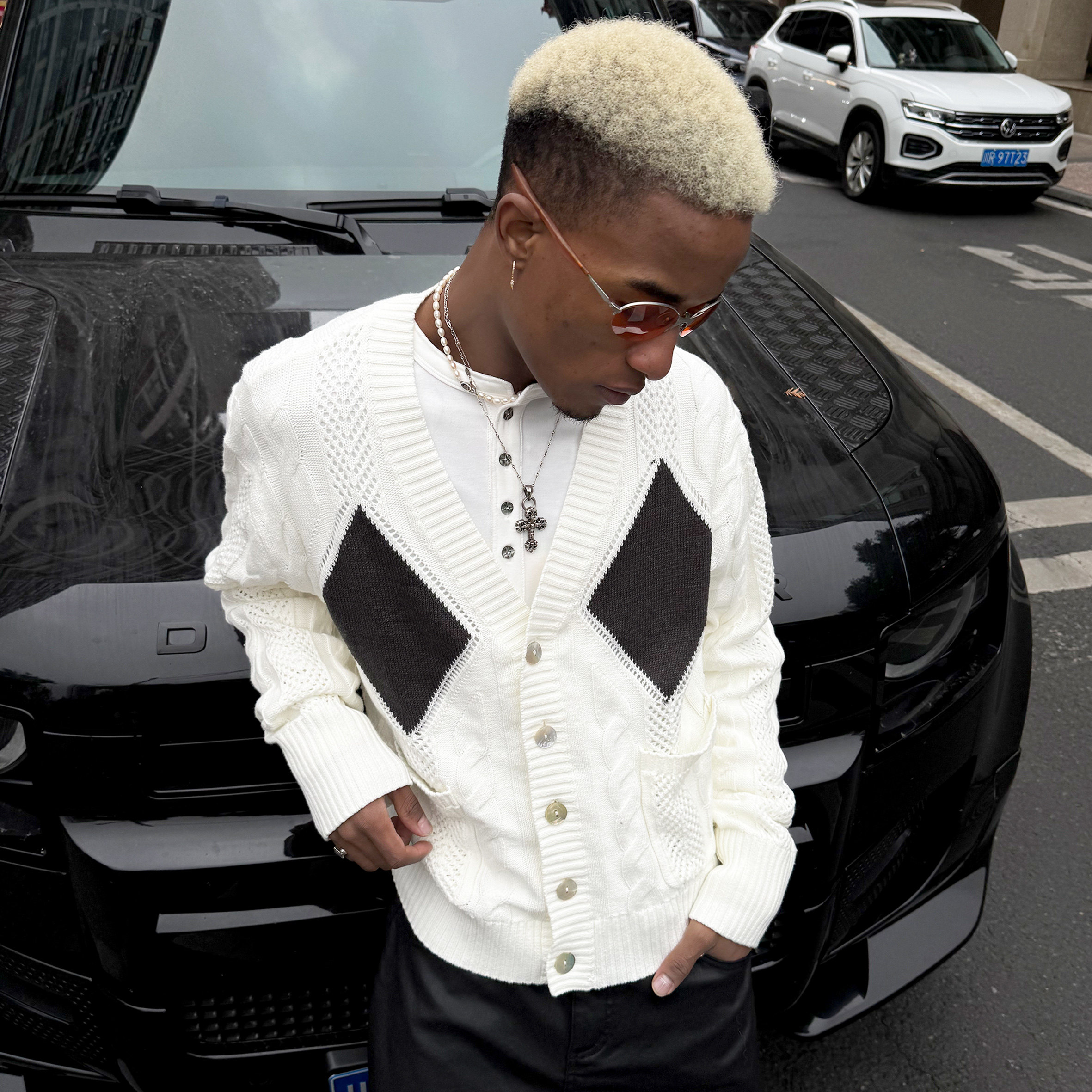 87¥ CZ001 ESLcUpiH2uD¥ https://m.tb.cn/h.7AEwBge STEEPC 复古绞花多层花型老钱菱格纹V领休闲短宽针织开衫毛衣外套 --------------------- 【原售价】439元 【现售价】439元。