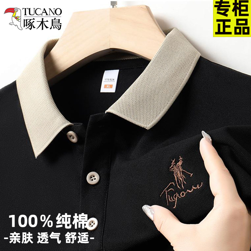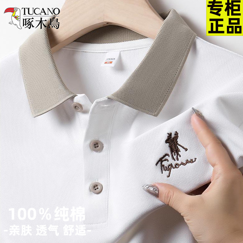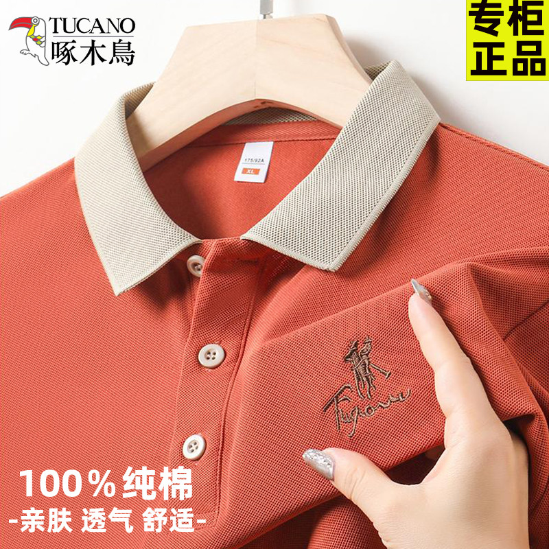 📚 啄木鸟夏季男士短袖t恤中青年宽松春天翻领POLO衫上衣体恤半袖男