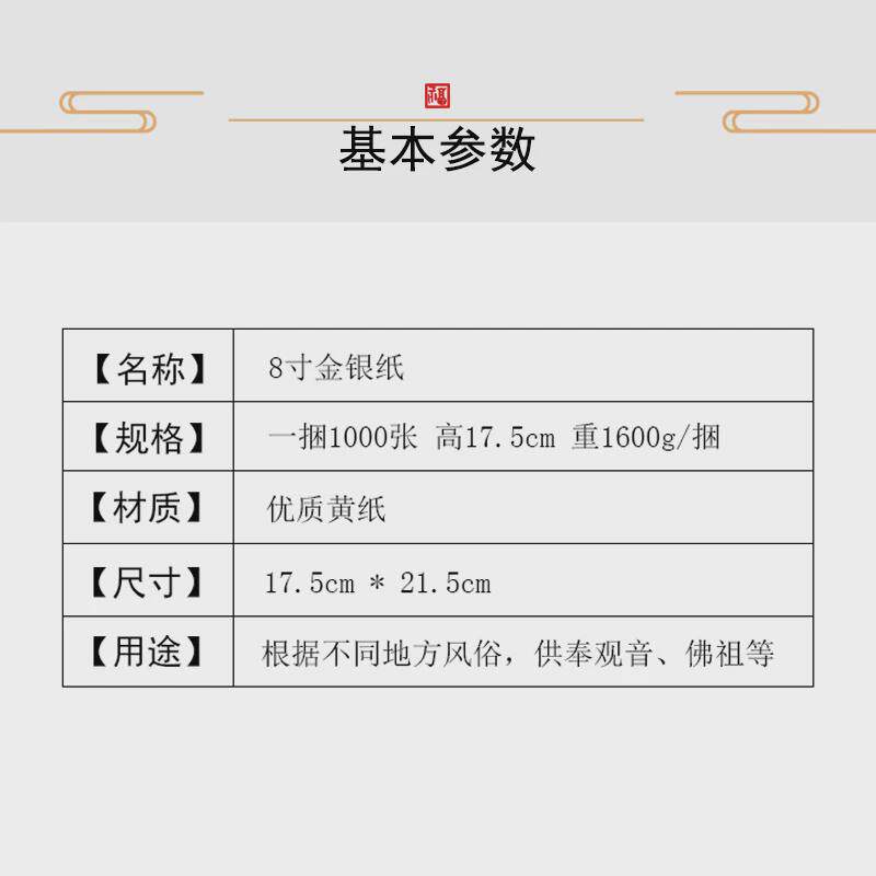 📚 8寸金银纸1000张烧纸对金清明节用品黄纸元宝满金纸钱金纸银纸