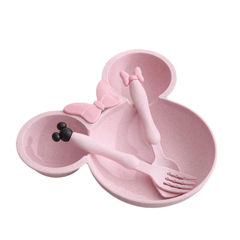 📚 小麦秸秆幼儿童餐具可爱卡通米奇米妮分格餐盘套装防摔可微波加热