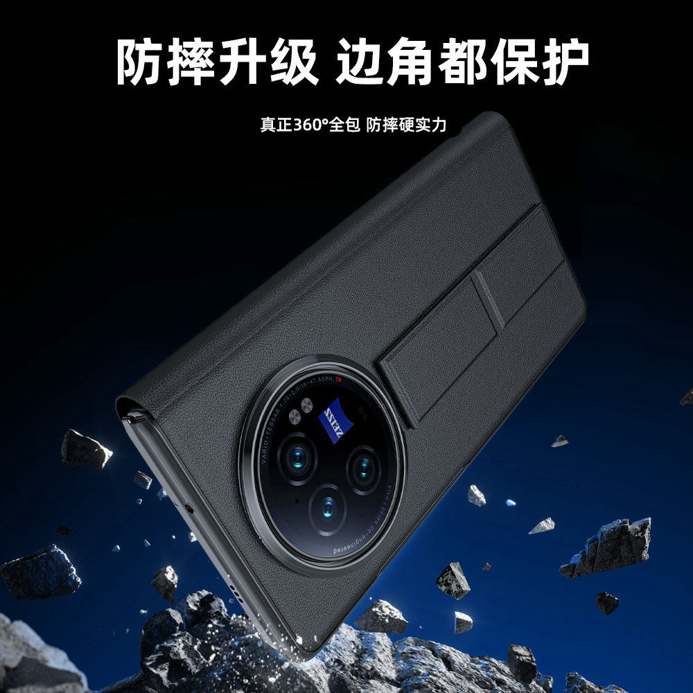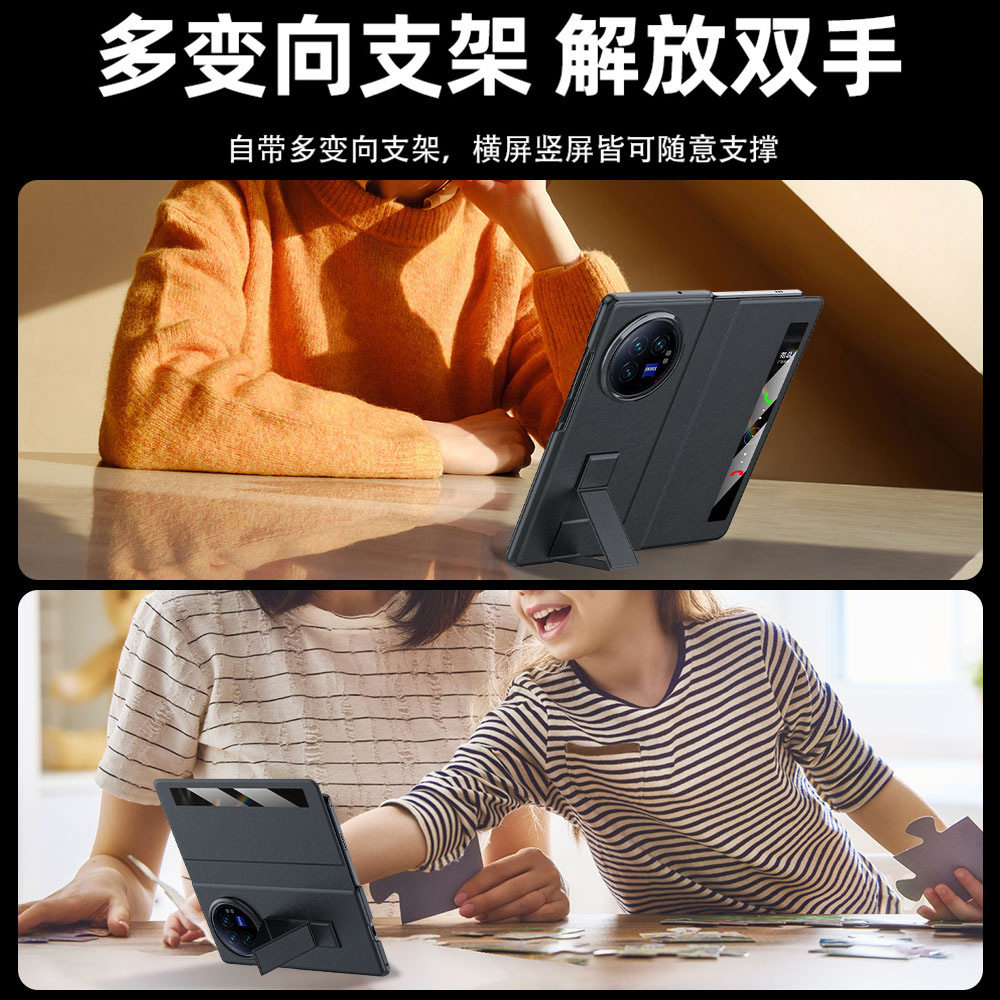 📚 适用vivoxfold5手机壳真皮新款vivoxfold3折叠屏超薄全包防摔智能视窗翻盖式保护套xfold5支架款男女高端皮套