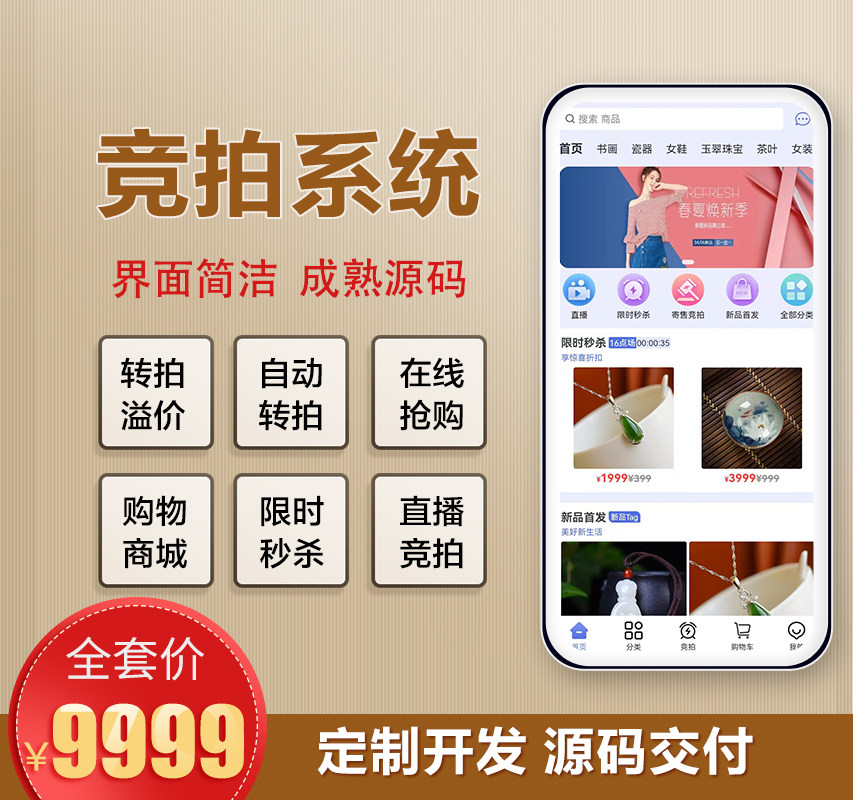 🎉大家好,今天我要给大家种草一款超值好物——竞拍溢价系统玉石画室模式抢单拍卖寄售商城H5APP源码搭建直播!🎁