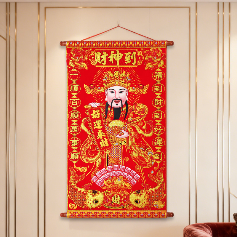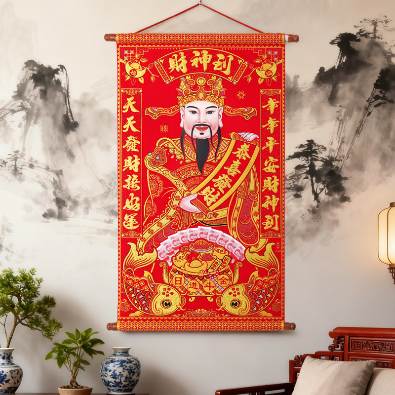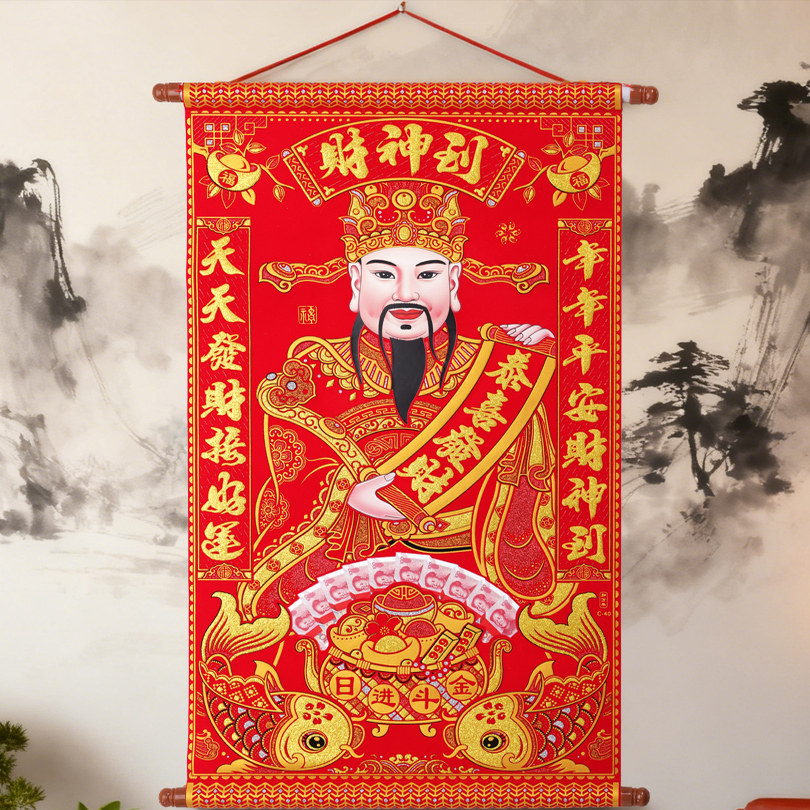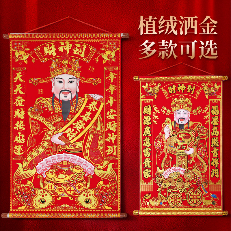 📚 2026春节挂轴财神爷绒布烫金财神画像客厅挂画新年室内装饰画大号