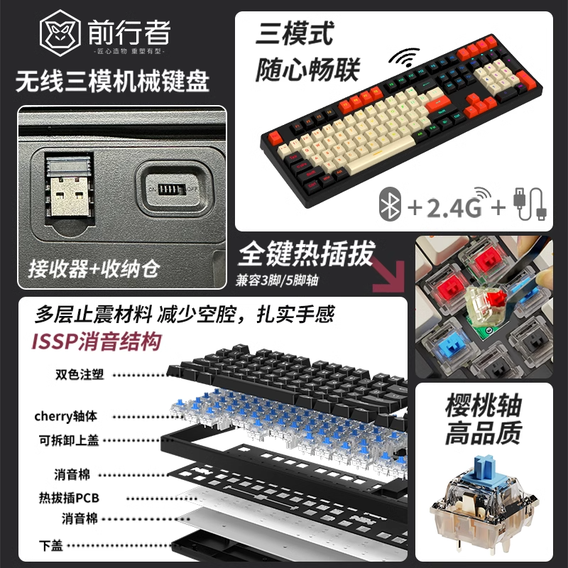 📚 前行者樱桃cherry轴机械键盘无线三模台式电脑87游戏电竞专用办公