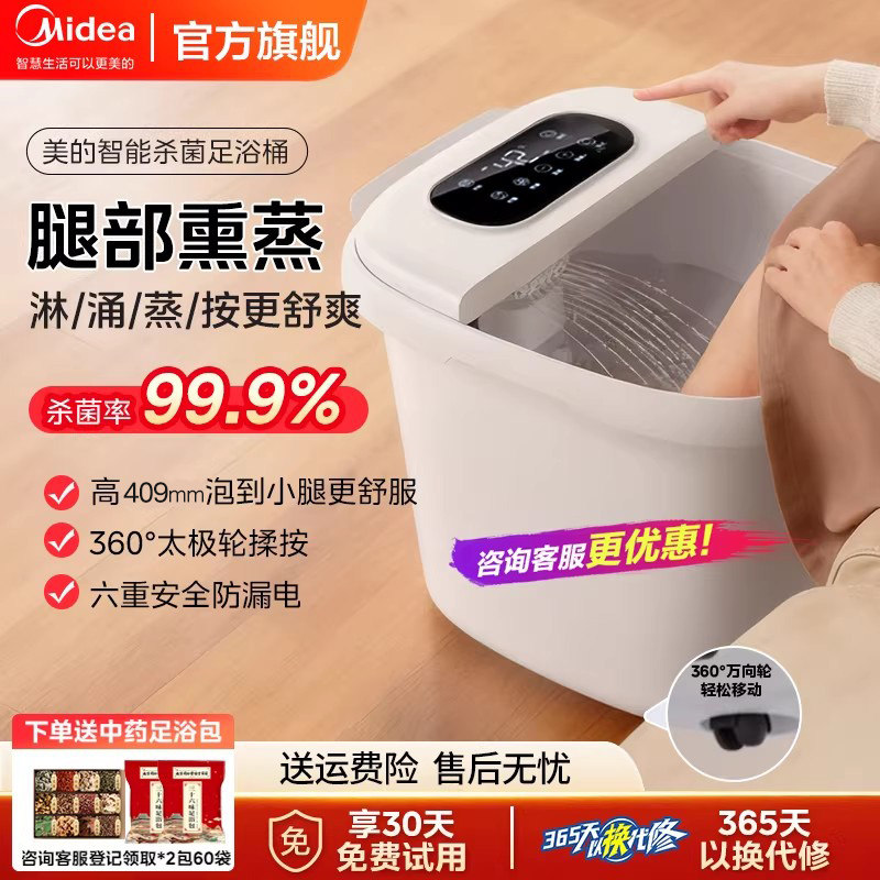 📚 美的泡脚桶加热恒温杀菌高深桶全自动按摩足浴器洗脚盆节日礼物