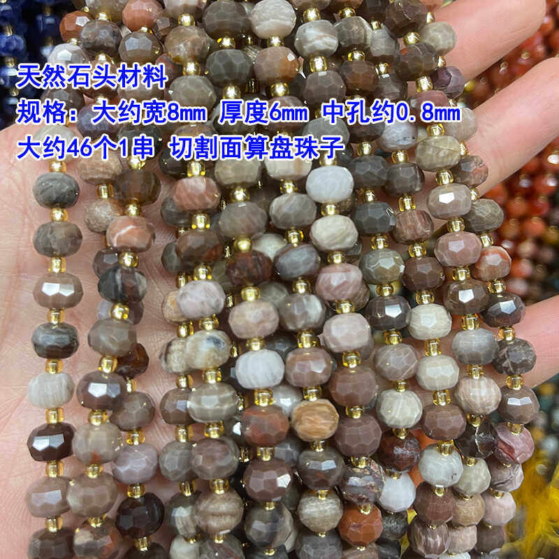 📚 天然无忧化木化石 8*6切面算盘珠半成品散珠 手链diy饰品串珠材料