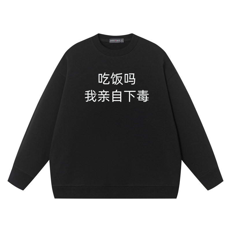 📚 吃饭吗我亲自下毒恶搞纯棉宽松情侣装恶搞衣服上衣打底圆领卫衣男