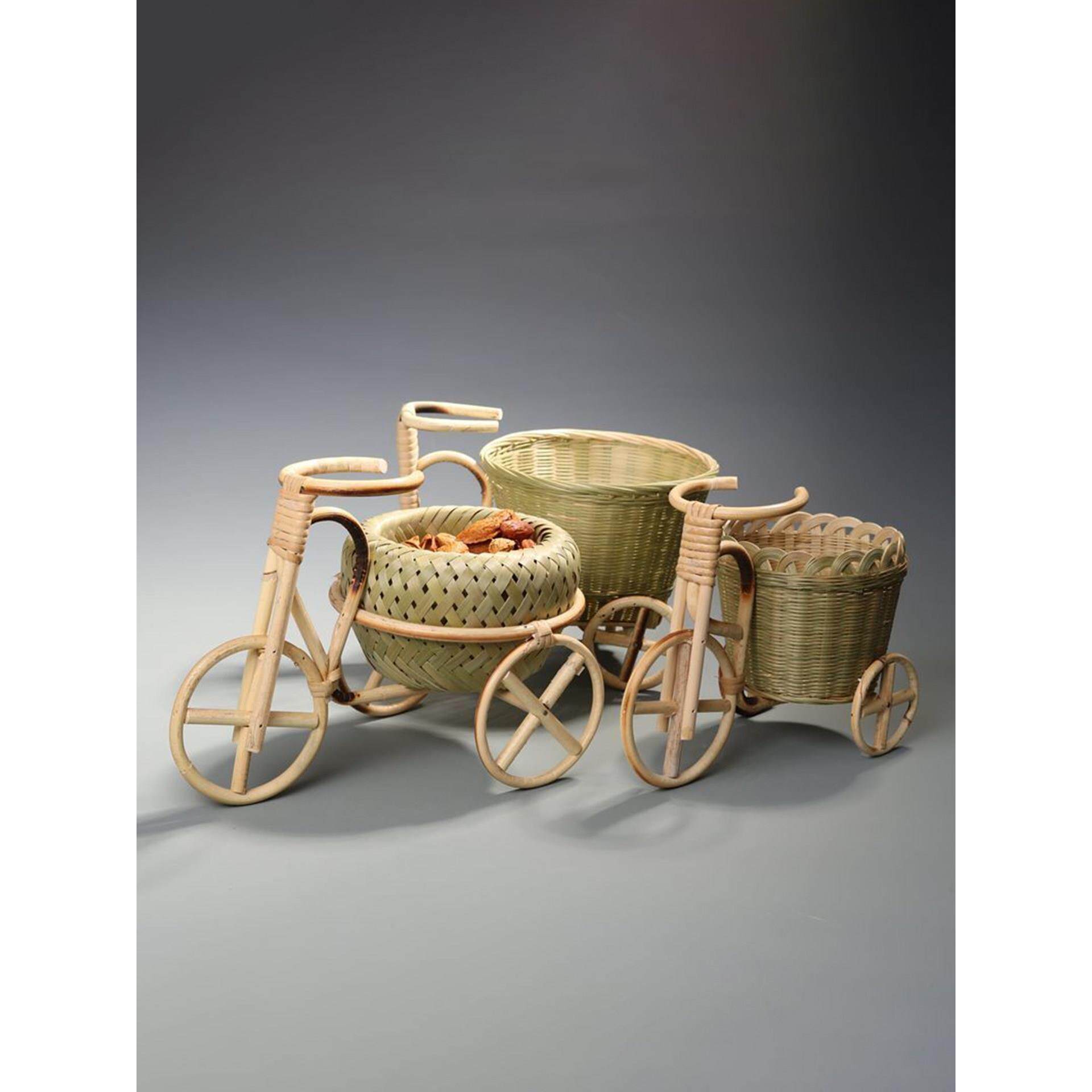 📚 三轮竹编篮小汽车竹篮工艺品编织篮水果车道具竹筐竹编果盘摆件