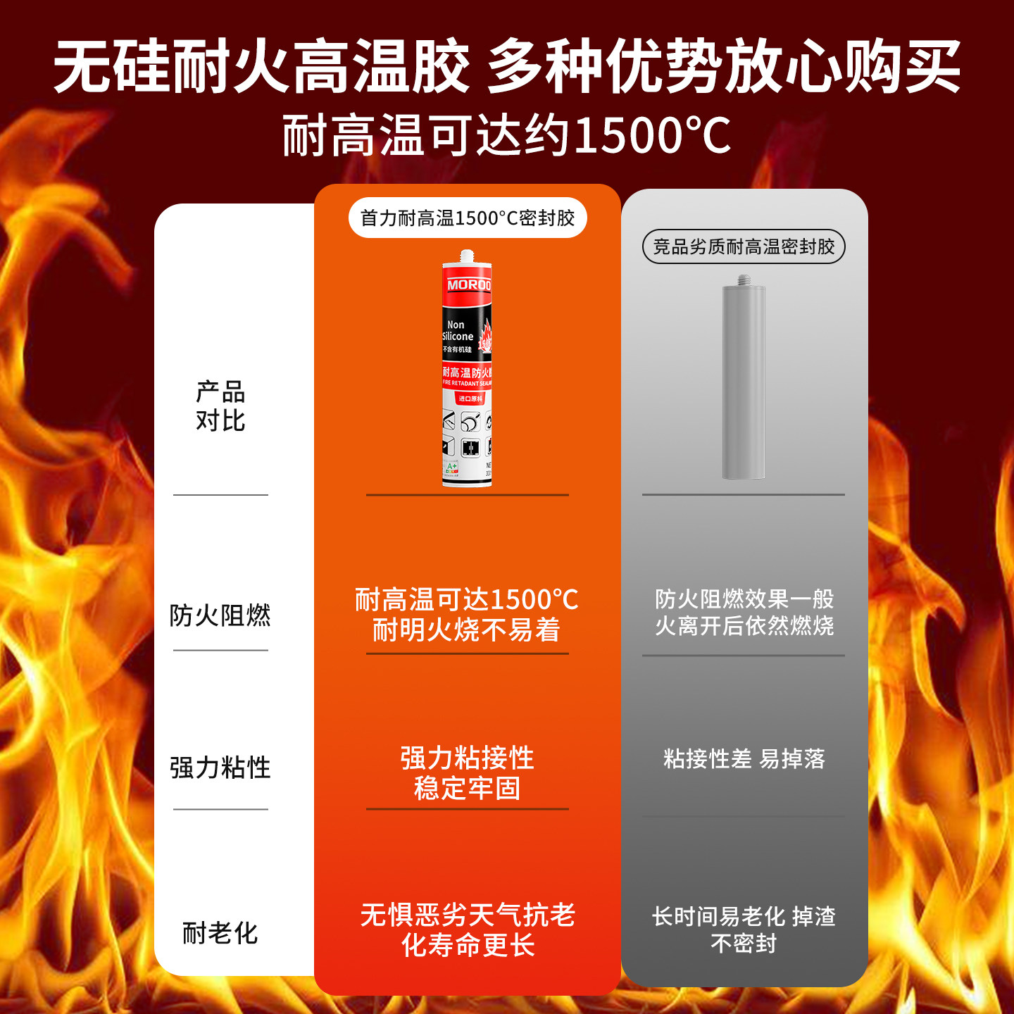 📚 耐高温密封胶1500度防火阻燃胶烤箱锅炉防水玻璃胶耐火高温结构胶