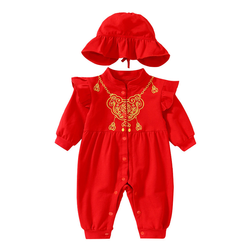 📚 宝宝满月服秋冬婴儿百日宴红色衣服新生女孩喜庆礼服女宝周岁唐装
