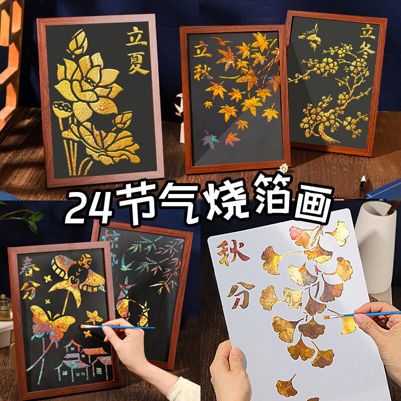 📚 二十四24节气非遗金箔画手工diy材料包烧箔画制作幼儿园活动