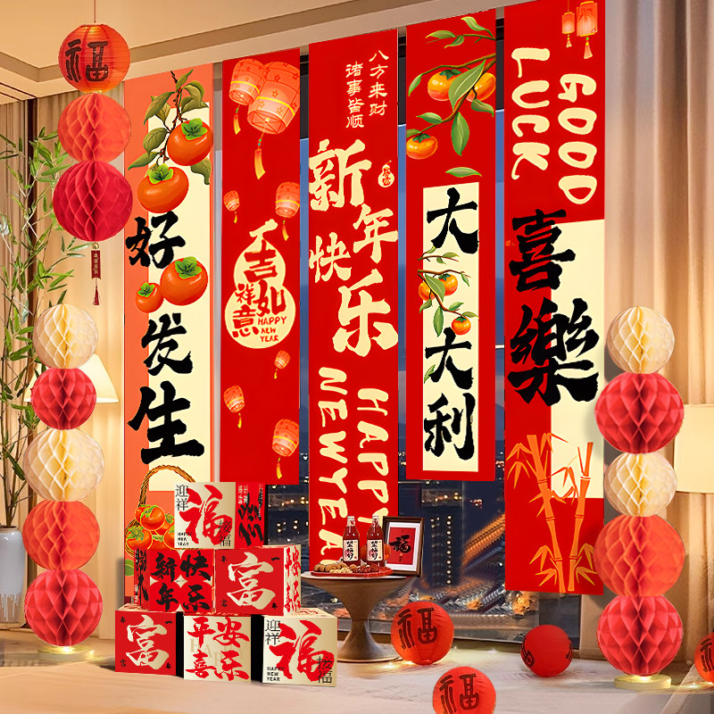 📚 新年场景布置活动氛围装饰品新年2026马年过年幼儿园店铺挂布春节