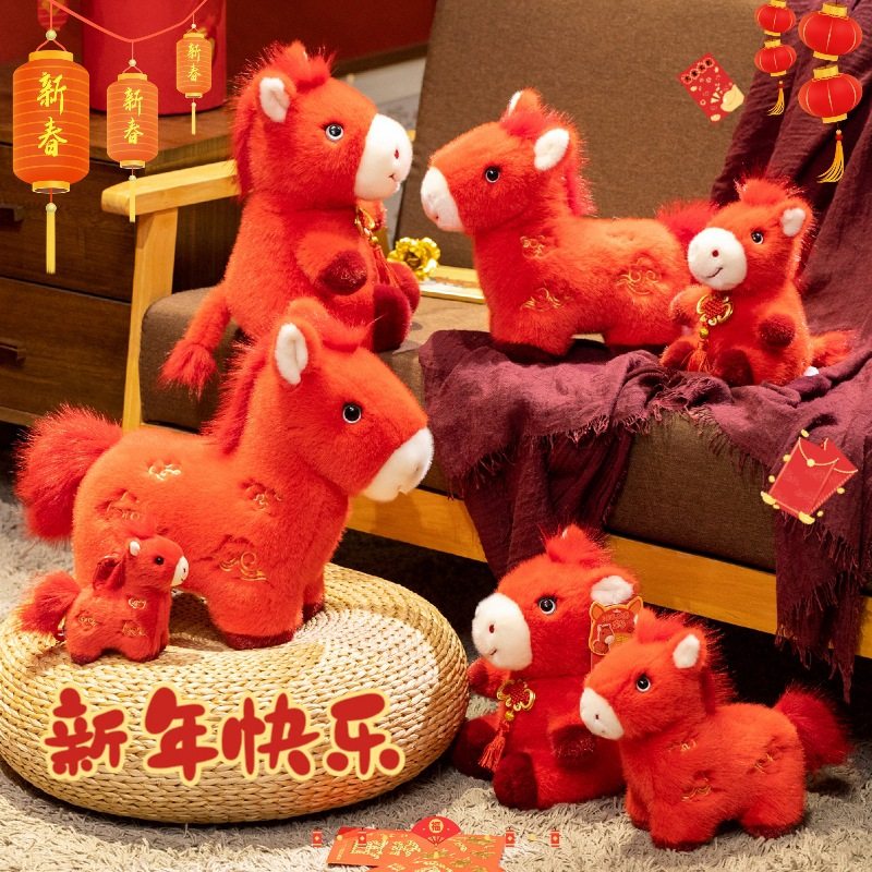 📚 红马小马毛绒玩具站姿小马驹玩偶生肖公仔红货新年礼物