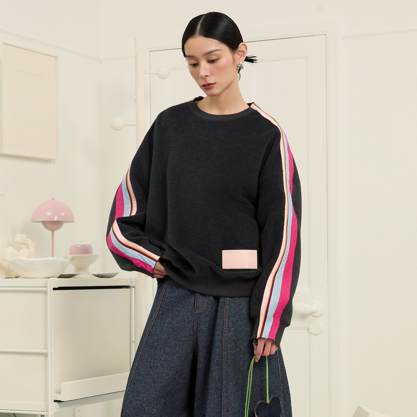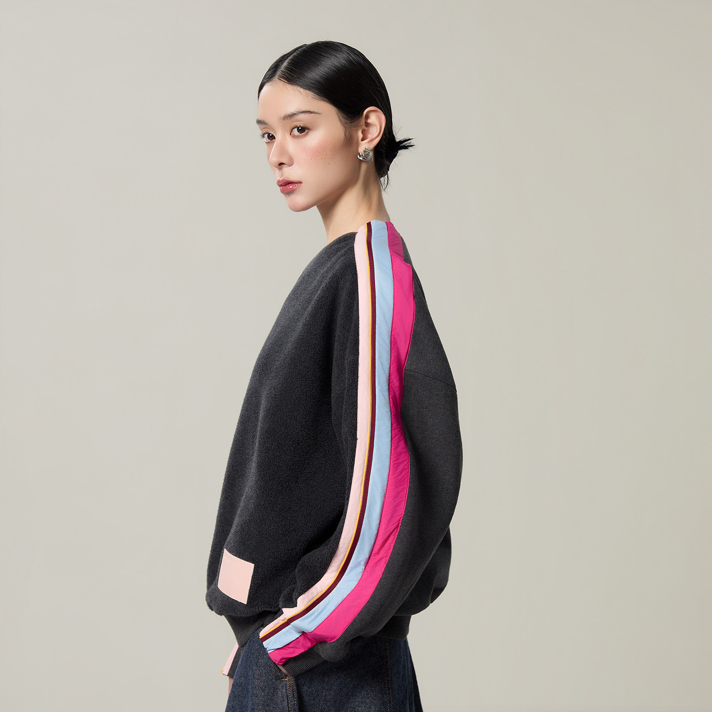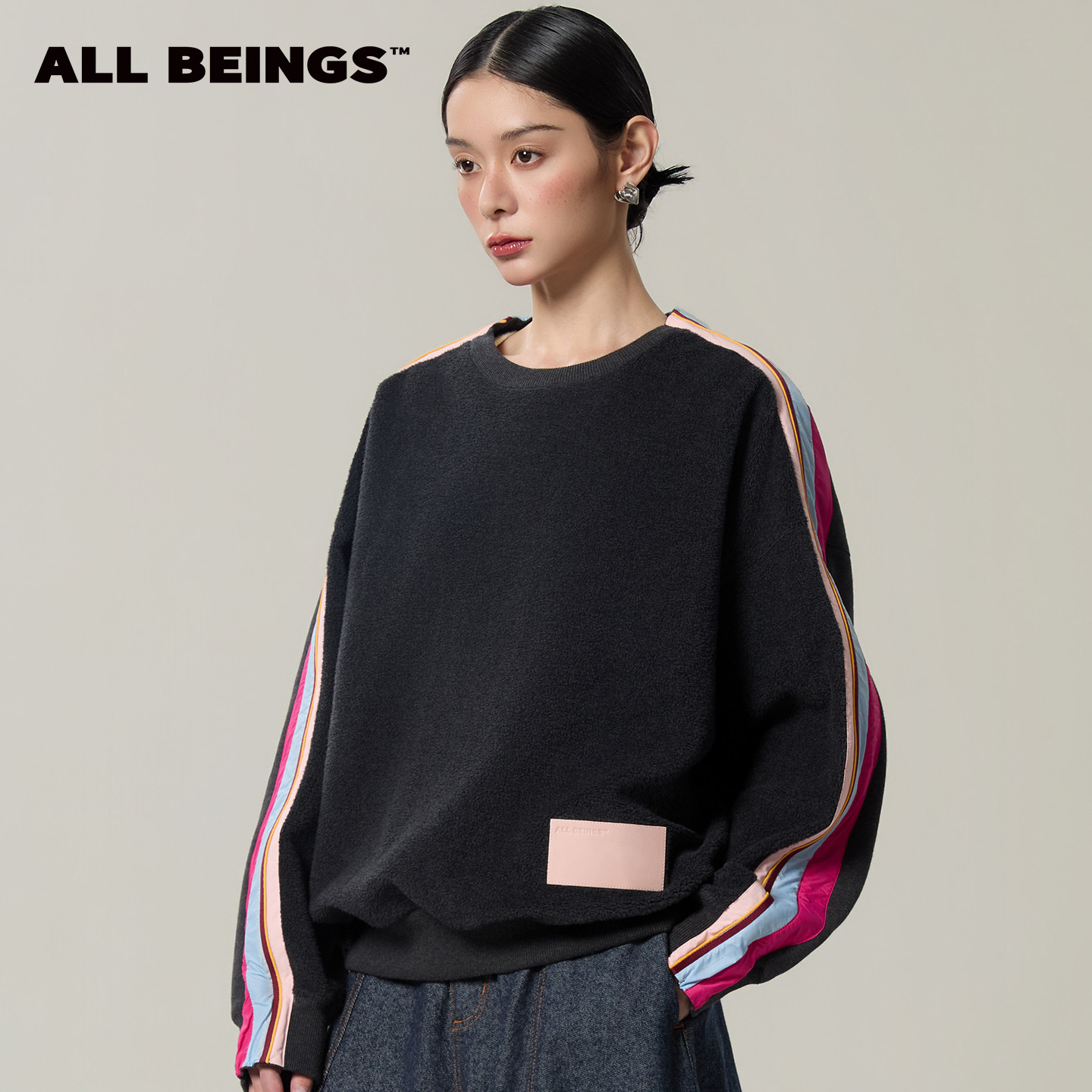 📚 ALL BEINGS26SS春季新款彩条拼接工艺圆领软糯绒感打底外出卫衣女