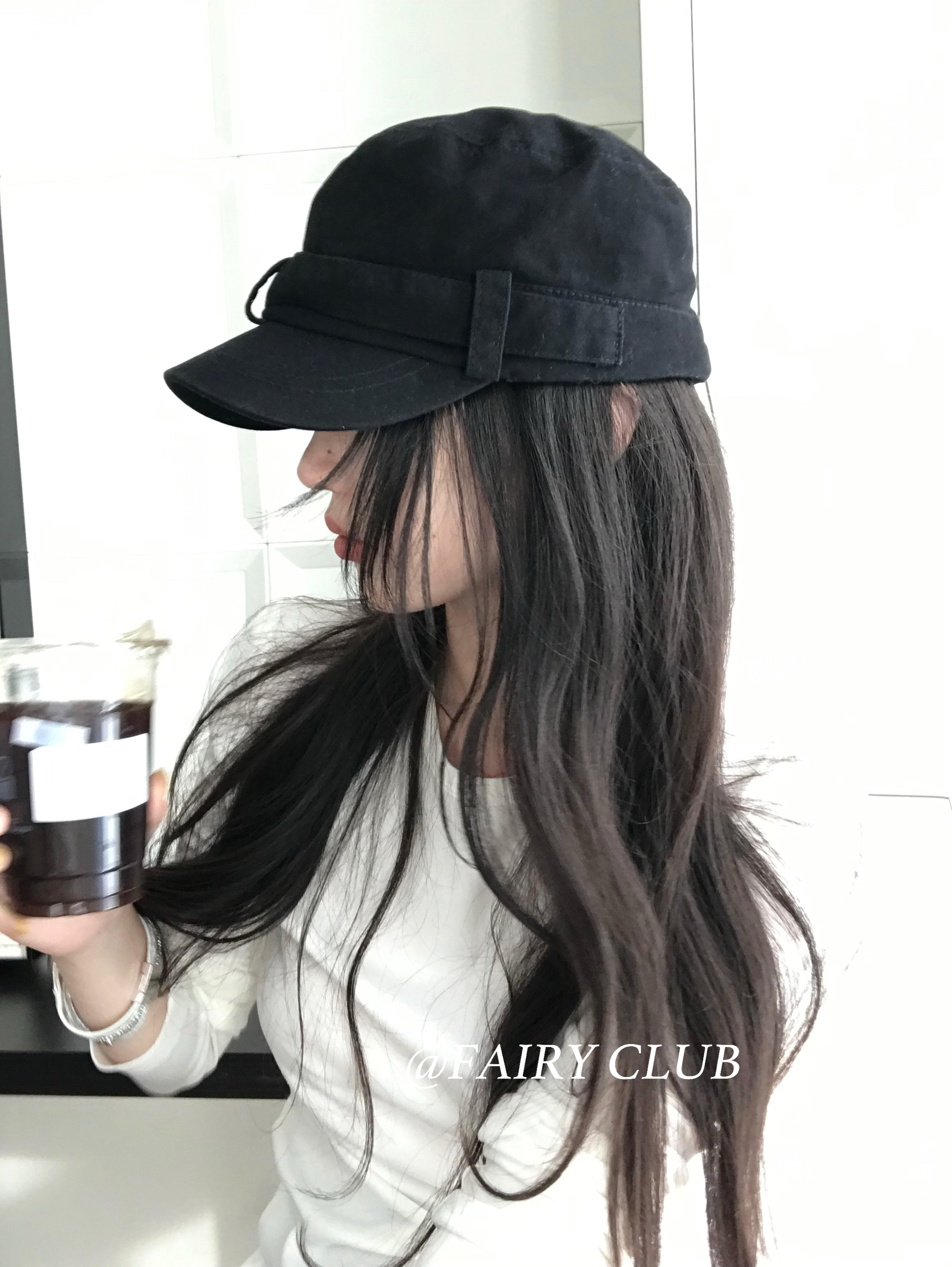📚 韩系复古水洗黑色平顶帽女显脸小日常休闲百搭ins马术帽鸭舌帽子