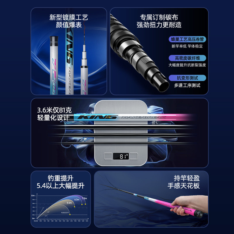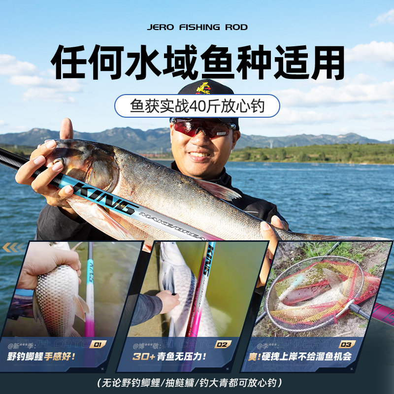 📚 名伦旗舰杰诺冰蓝粉钓鱼竿手竿台钓竿野钓超轻超硬鲤鱼鲫鱼竿碳素