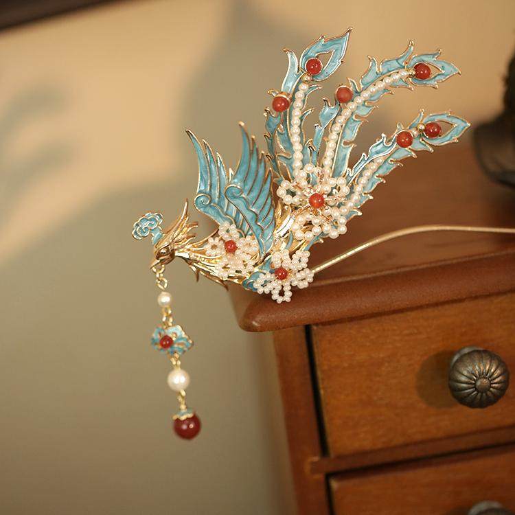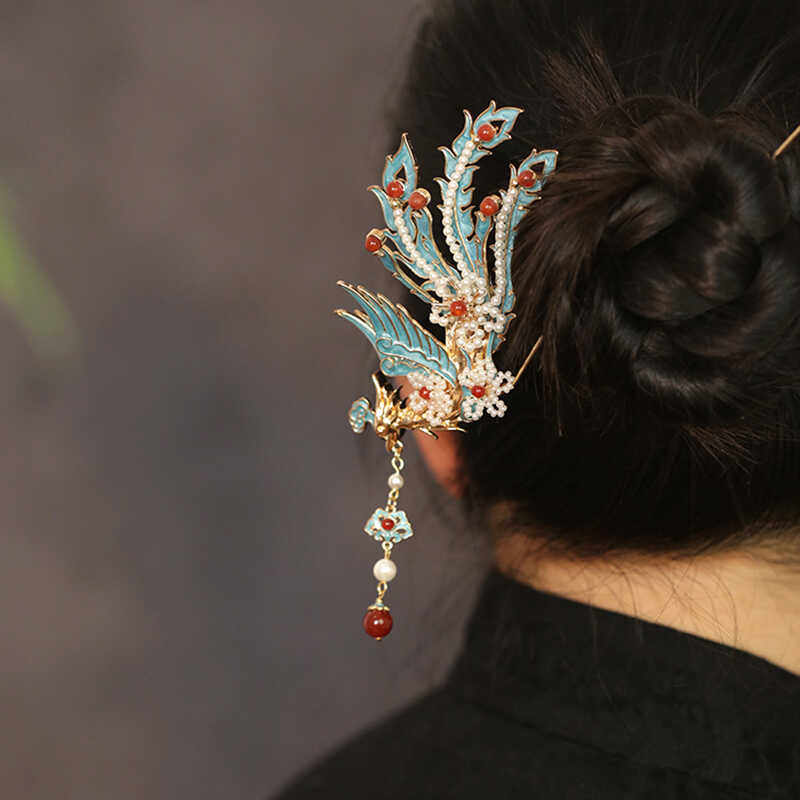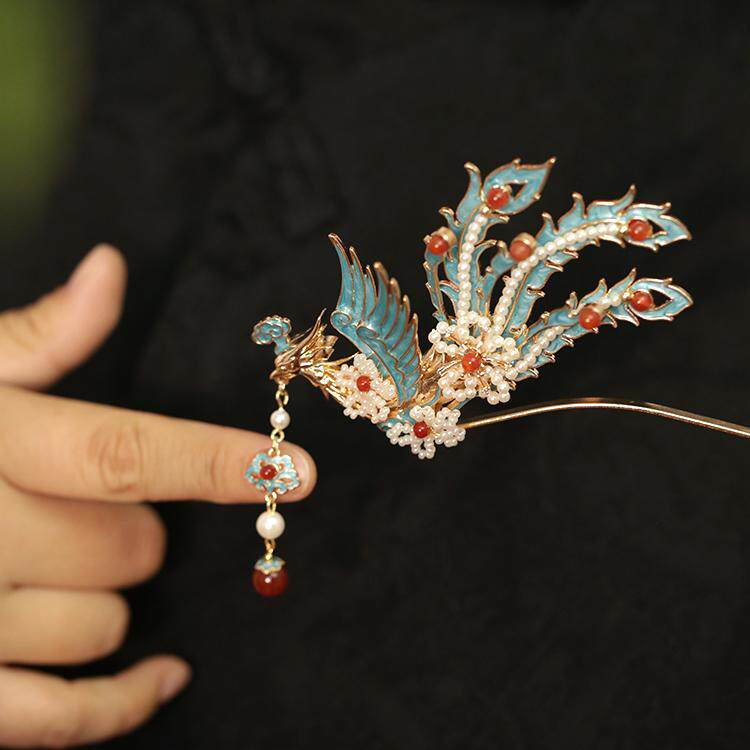 📚 凤凰发簪2025新款高端汉服簪子新中式清冷烧蓝宋制发冠旗袍发饰品
