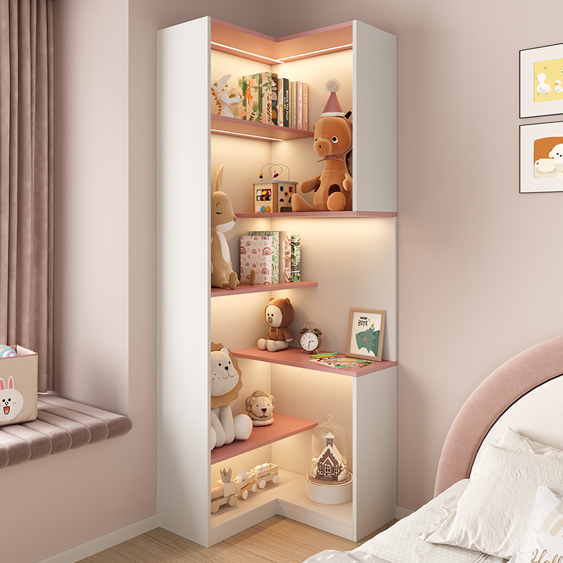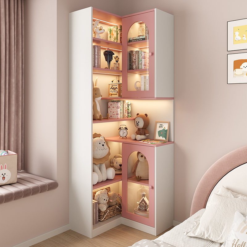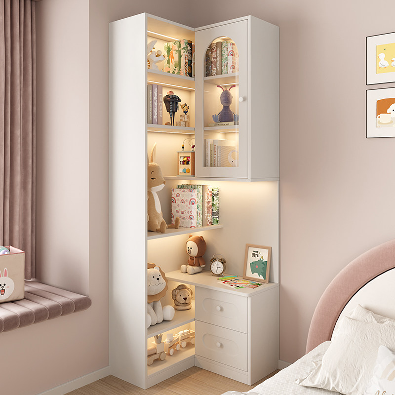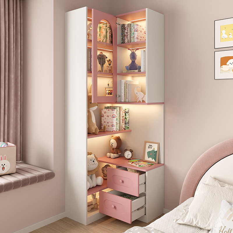 📚 儿童房公主风床头柜家用卧室一体转角书柜ENF级落地置物书架定制