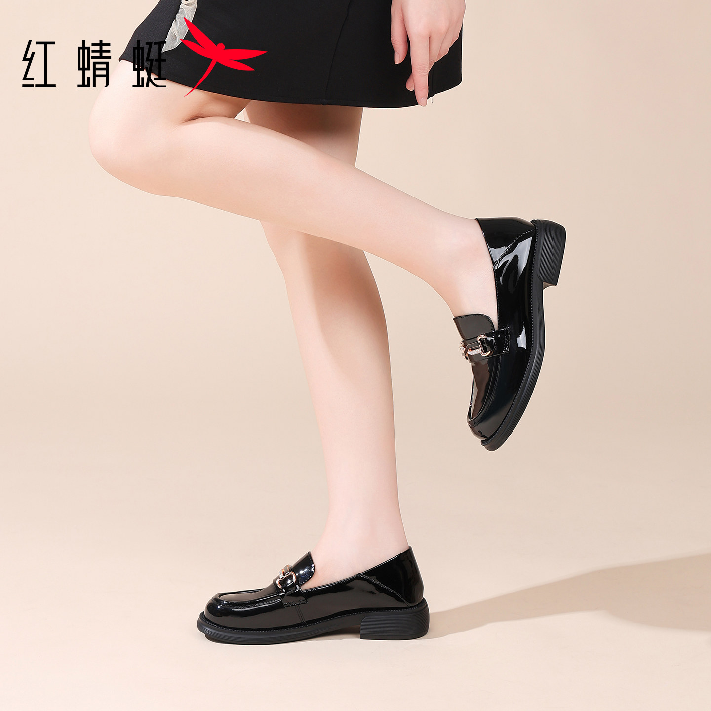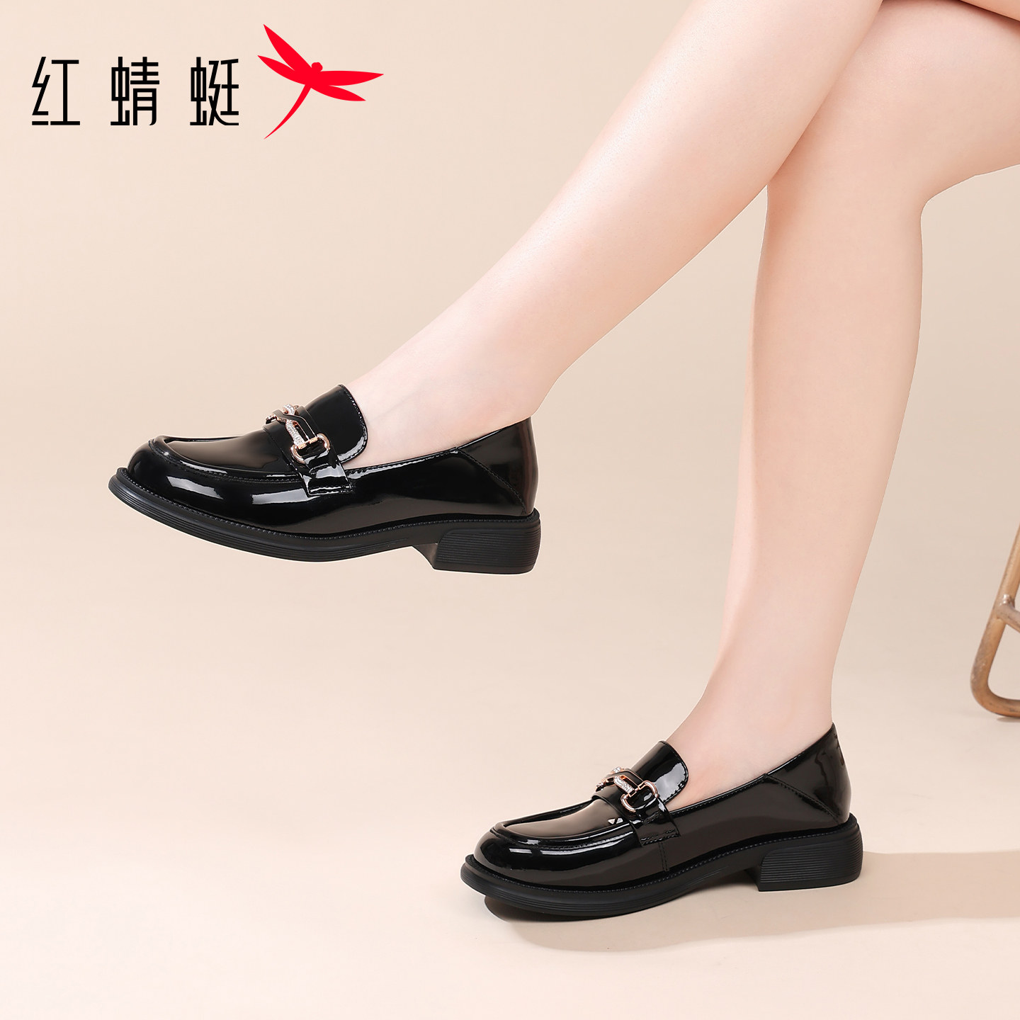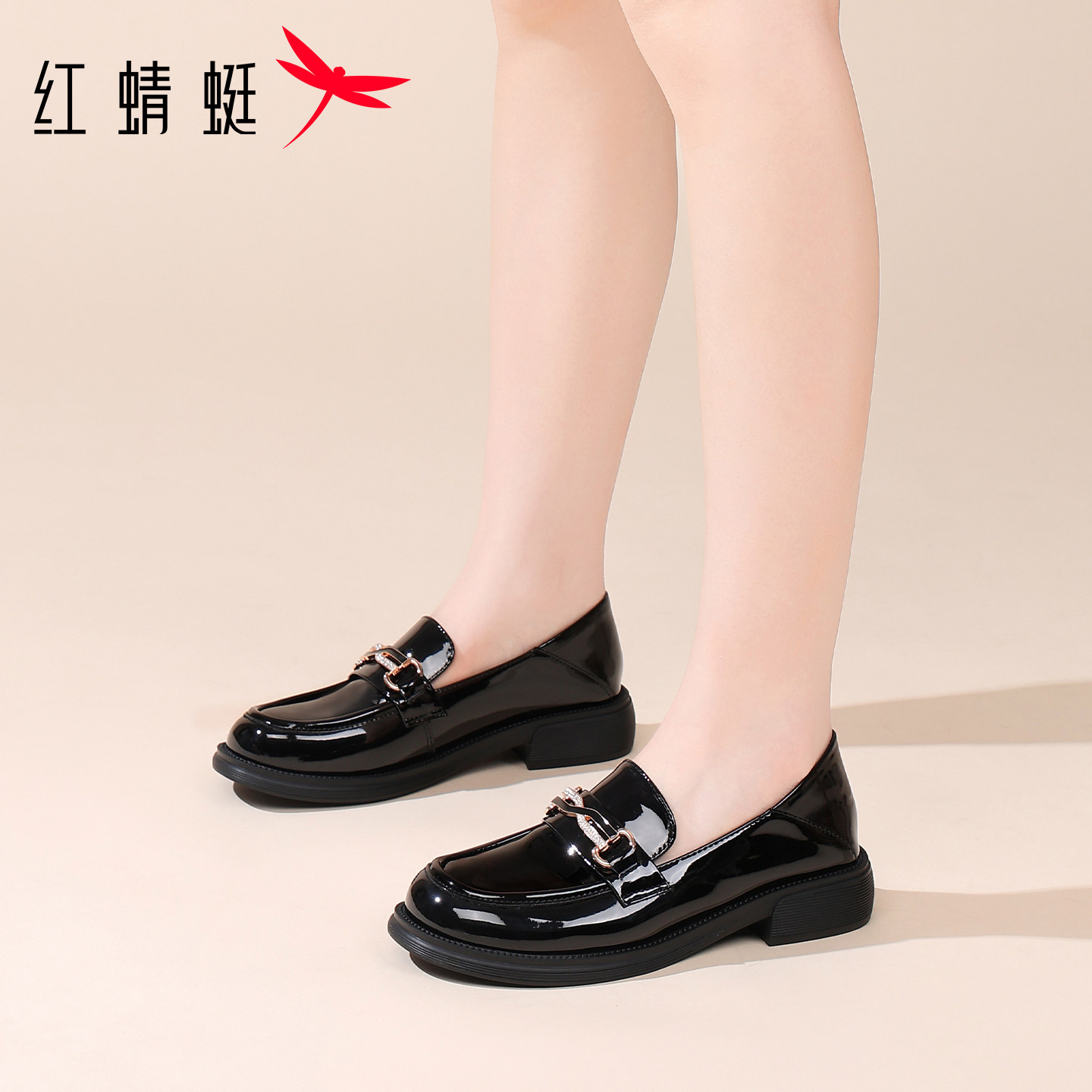 📚 红蜻蜓女鞋春秋鞋子漆皮亮面休闲皮鞋女款乐福鞋真皮英伦单鞋软底