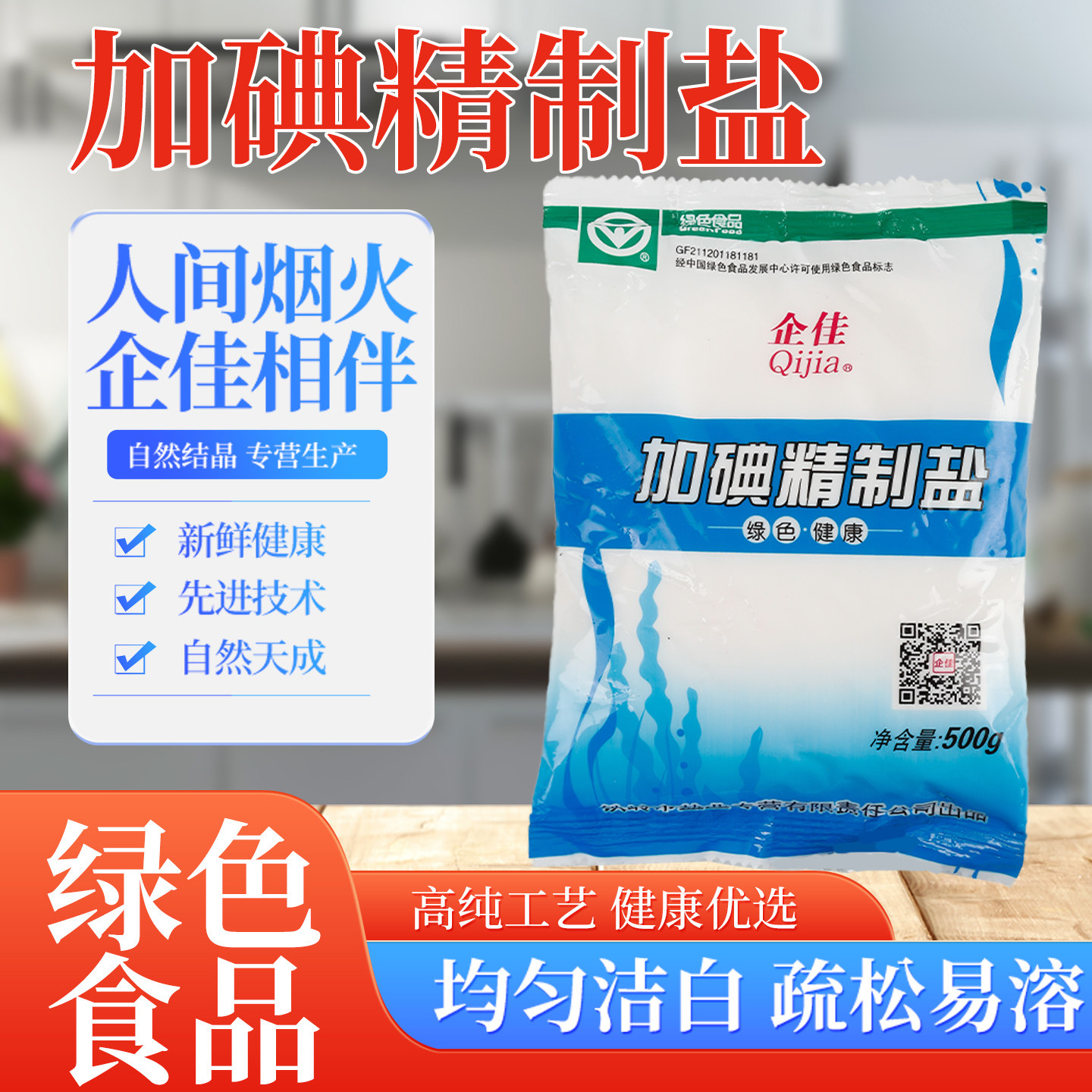 📚 企佳食用盐500g40袋饭店食堂家用加碘食盐大袋精盐厂家批发井矿盐