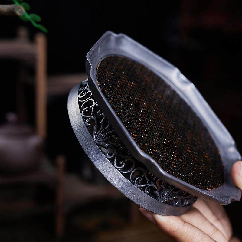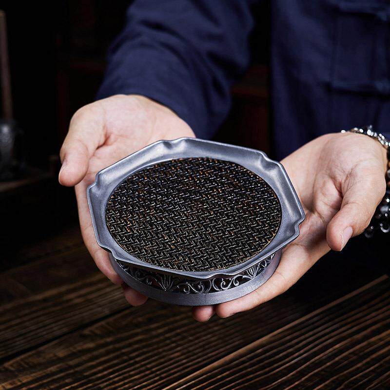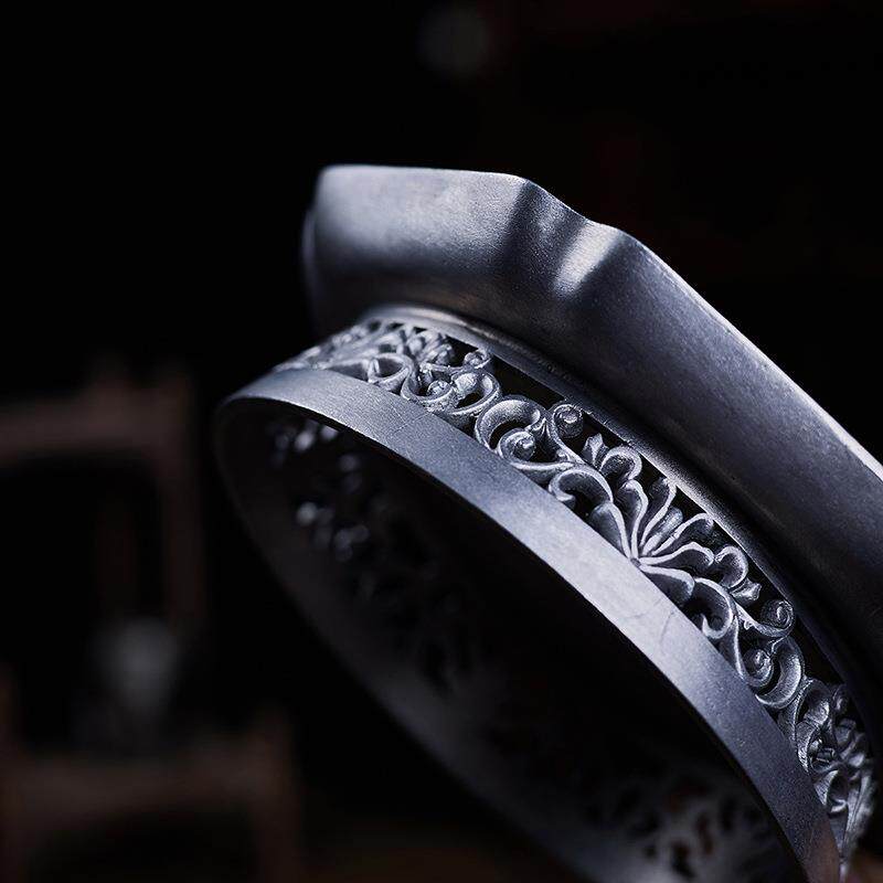 📚 大岸堂古锡手工雕刻蓄水壶承干泡茶台建水复古镂空茶道配件