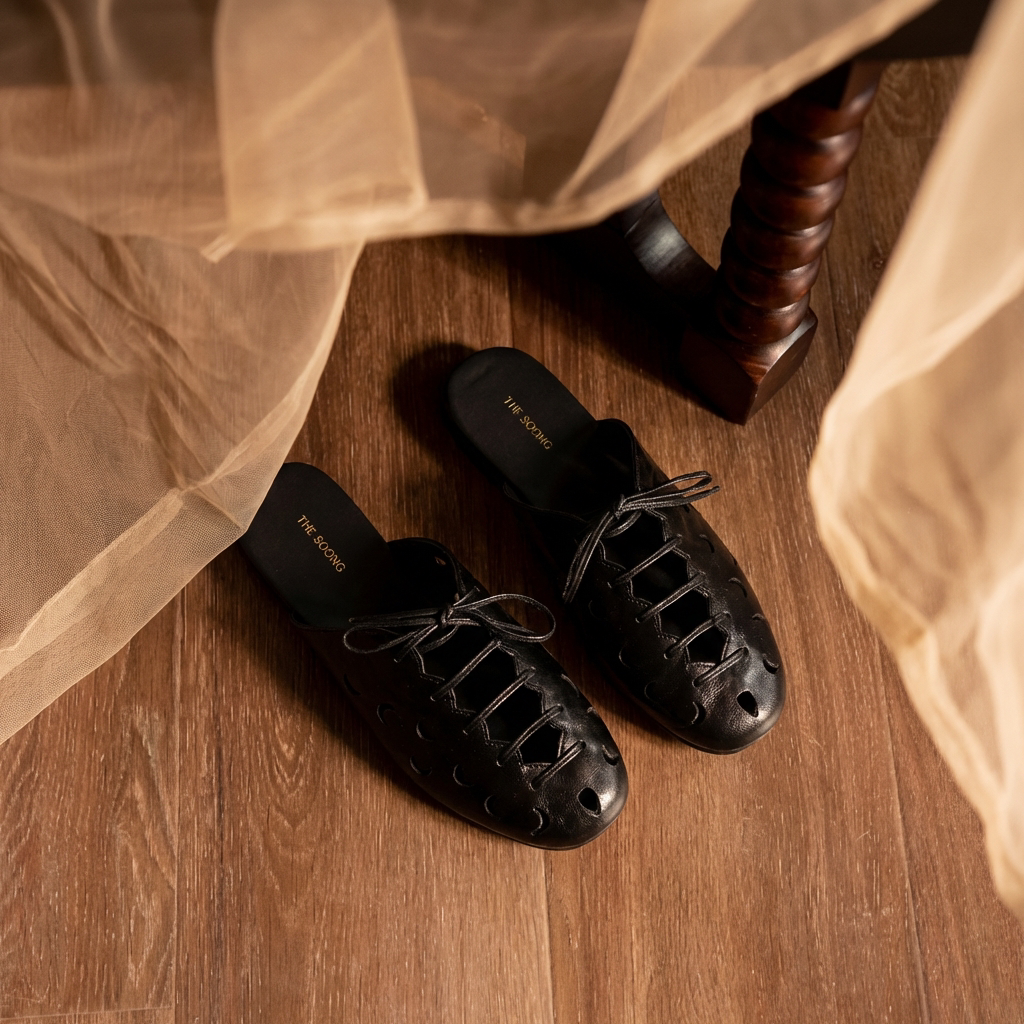 📚 THESOONG/法式镂空羊皮外穿穆勒半拖鞋女包头一脚蹬真皮凉拖鞋夏