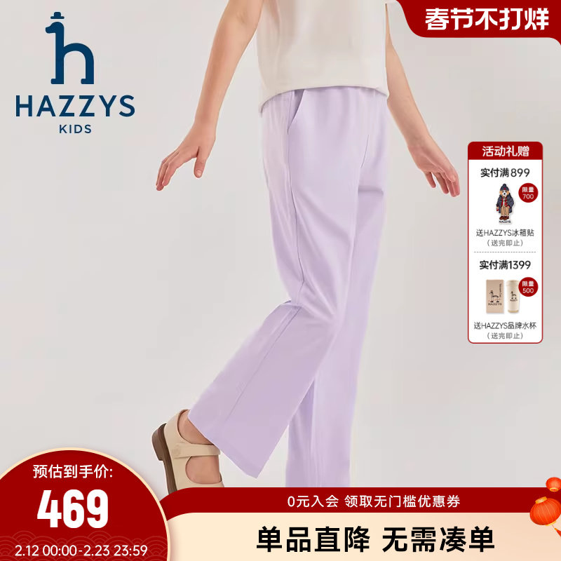 📚 hazzys哈吉斯童装女童裤子春新中大童微喇裤口德立胜速干长裤