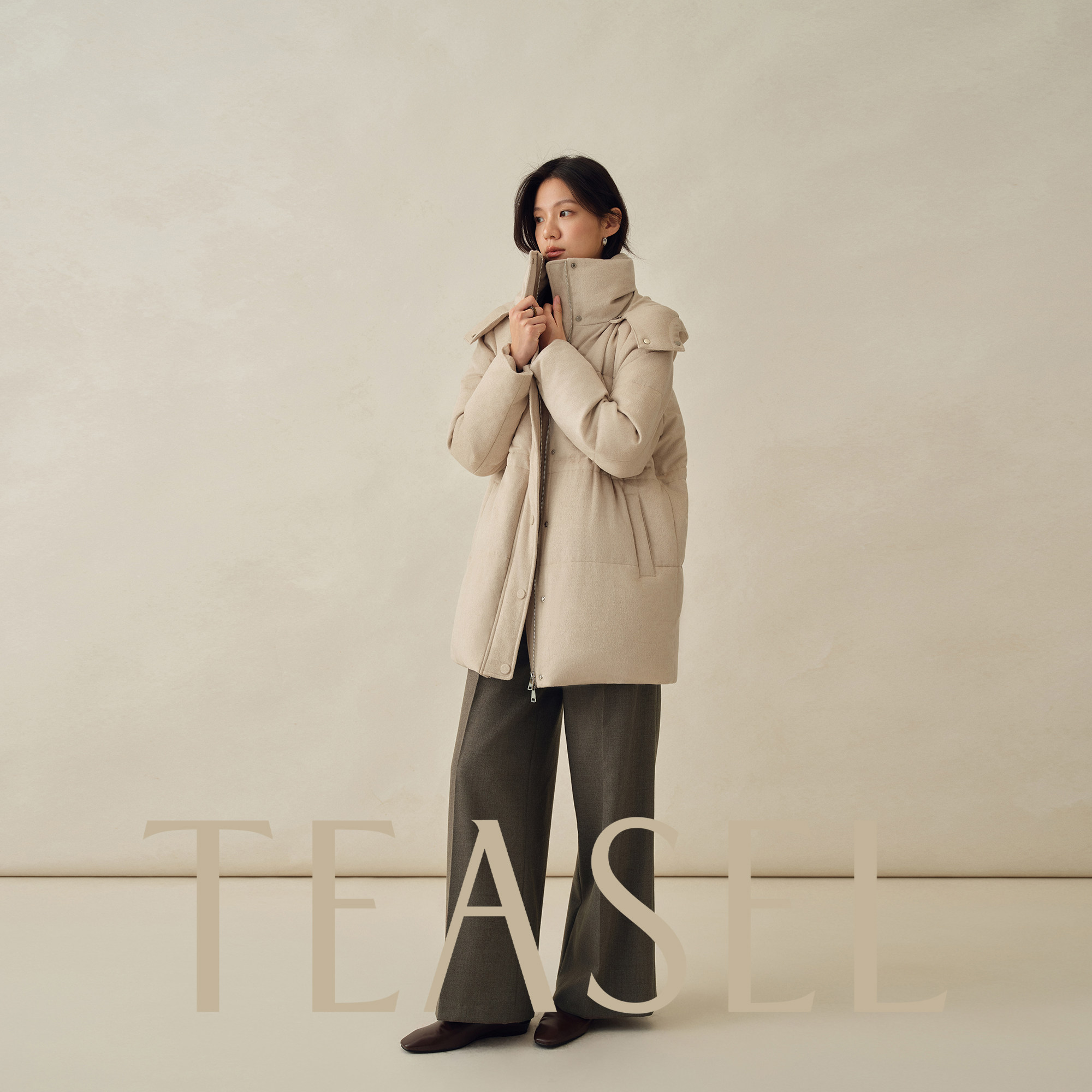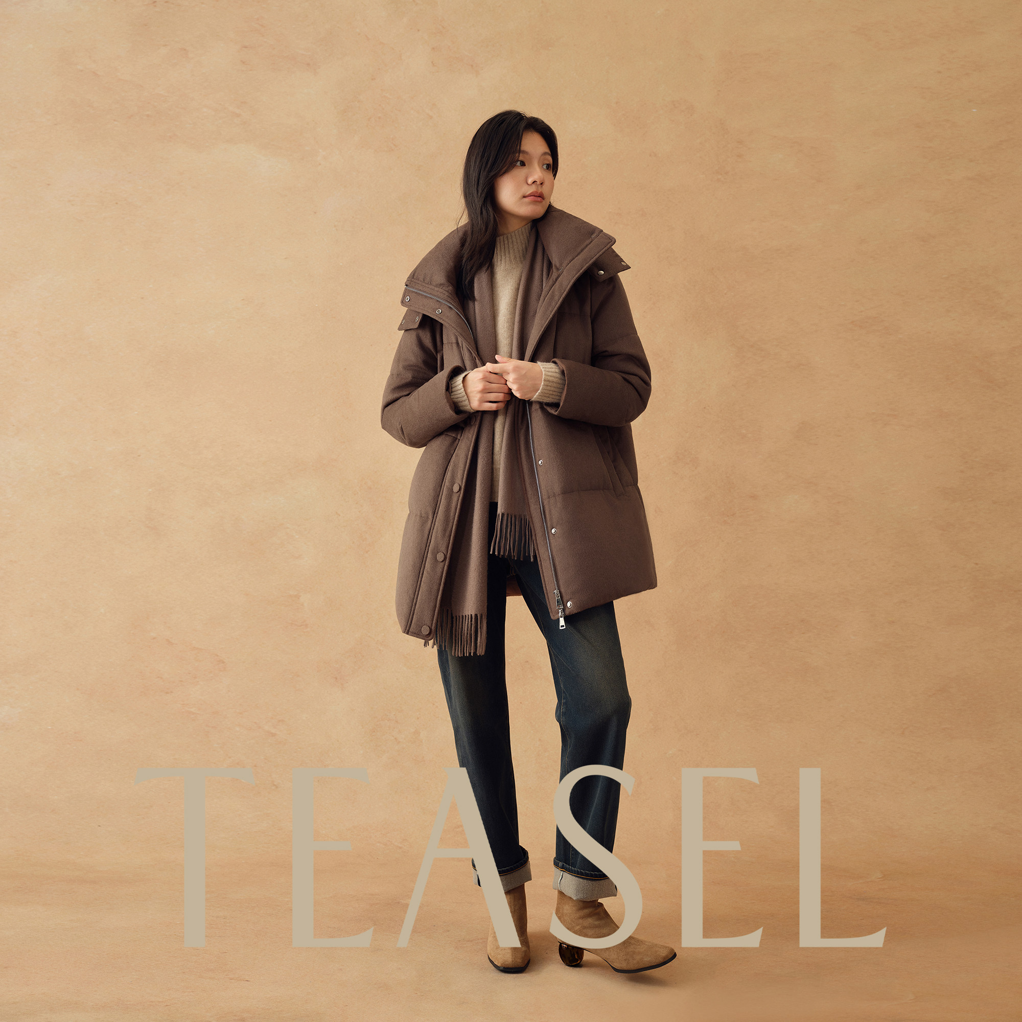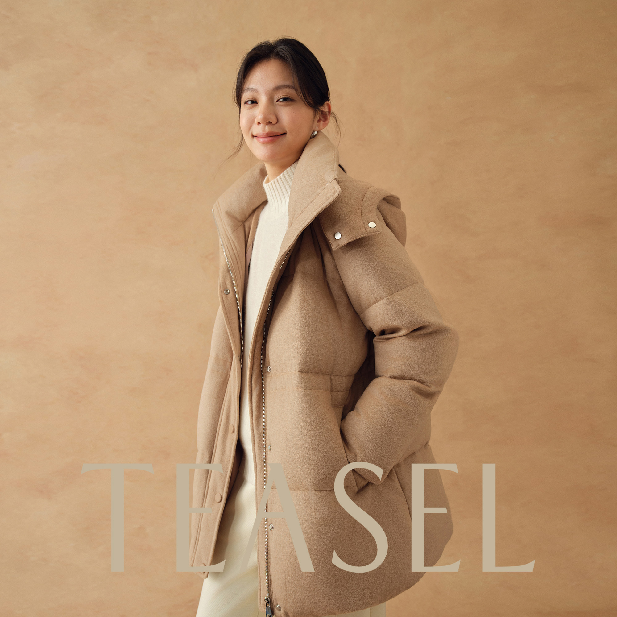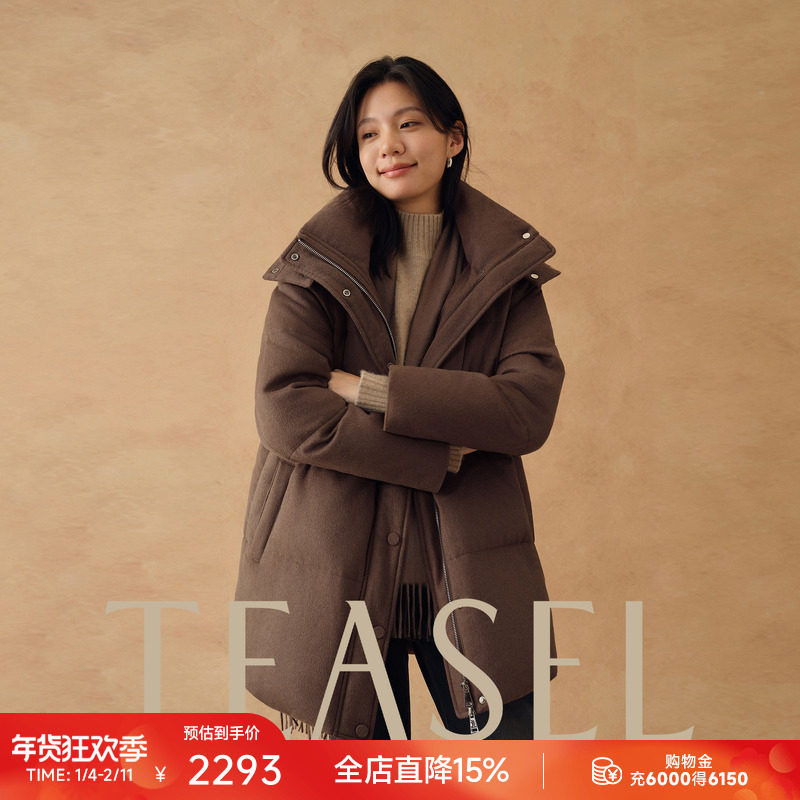 📚 TEASEL「班霍夫大街」丝驼绒&90白鹅绒连帽收腰一手长保暖羽绒服
