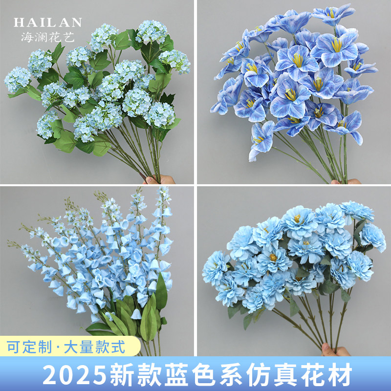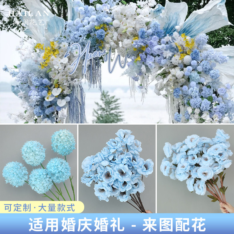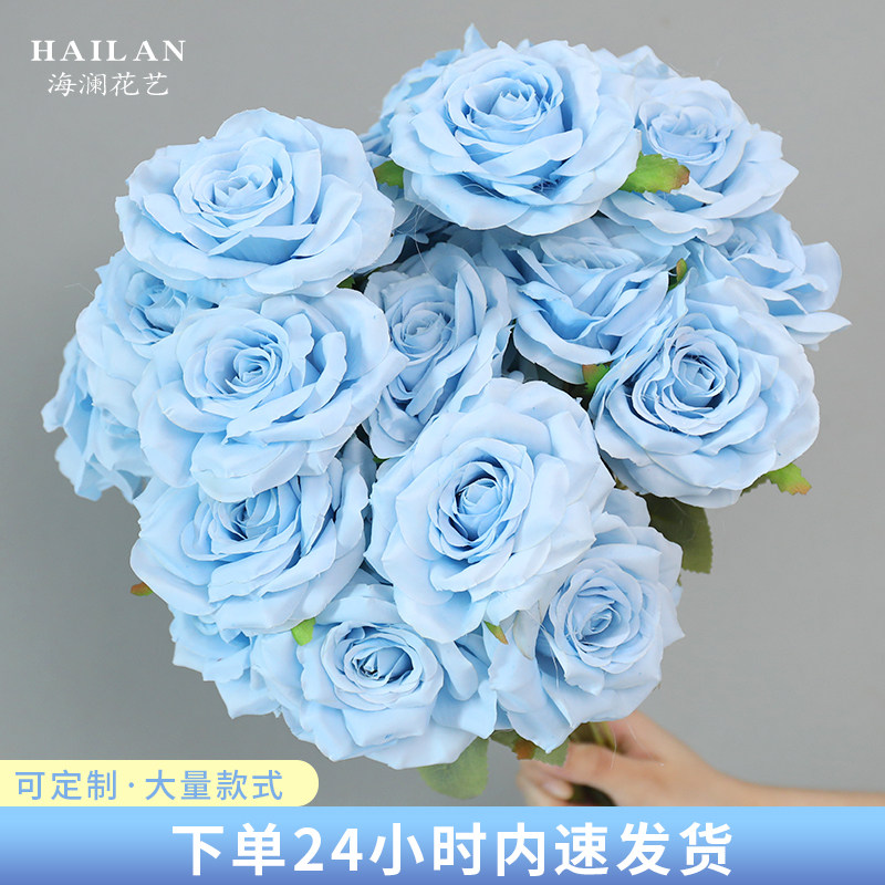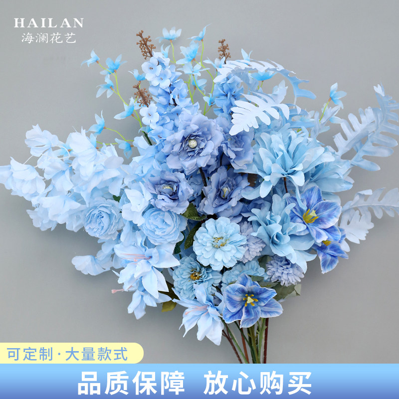 📚 蓝色仿真花假花绣球婚庆插花婚庆装饰花玫瑰花挂花订婚布置路引花