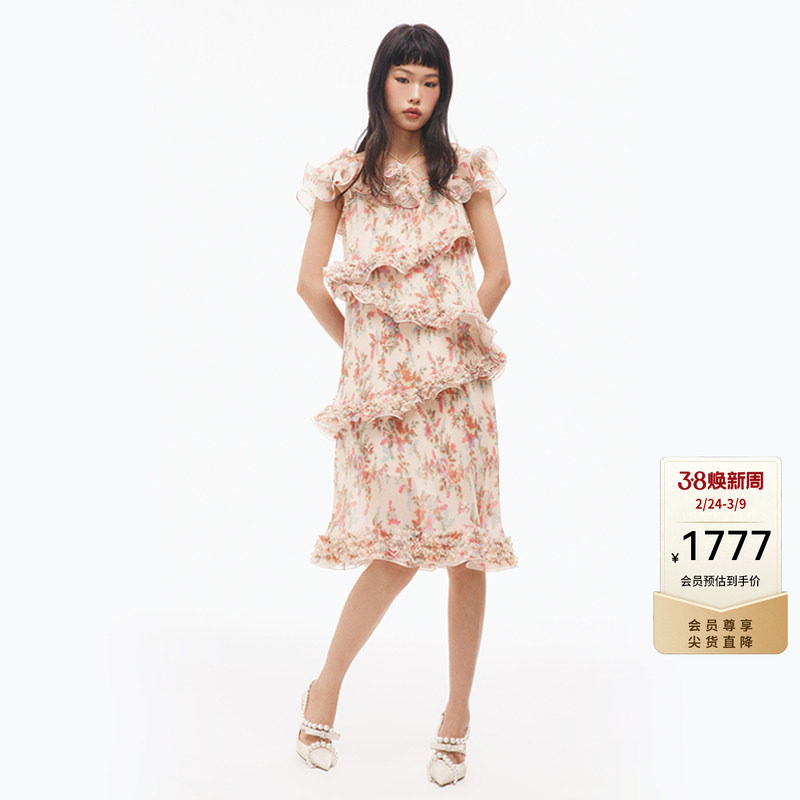📚 【波嬉】lefame拉飞姆时尚印花压褶仙气连衣裙女