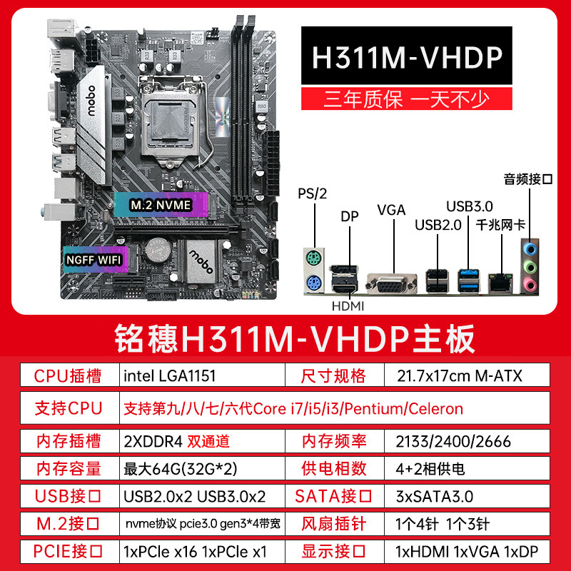 📚 全新保三年铭穗H311带WIFI B365 B360 H310 1151主板I5四件套电脑