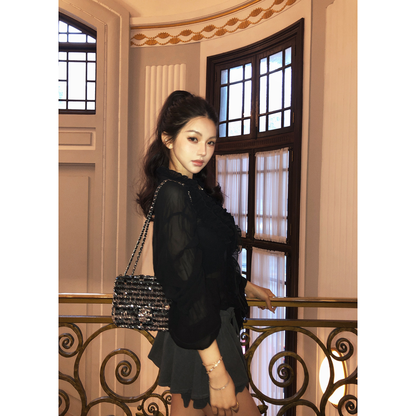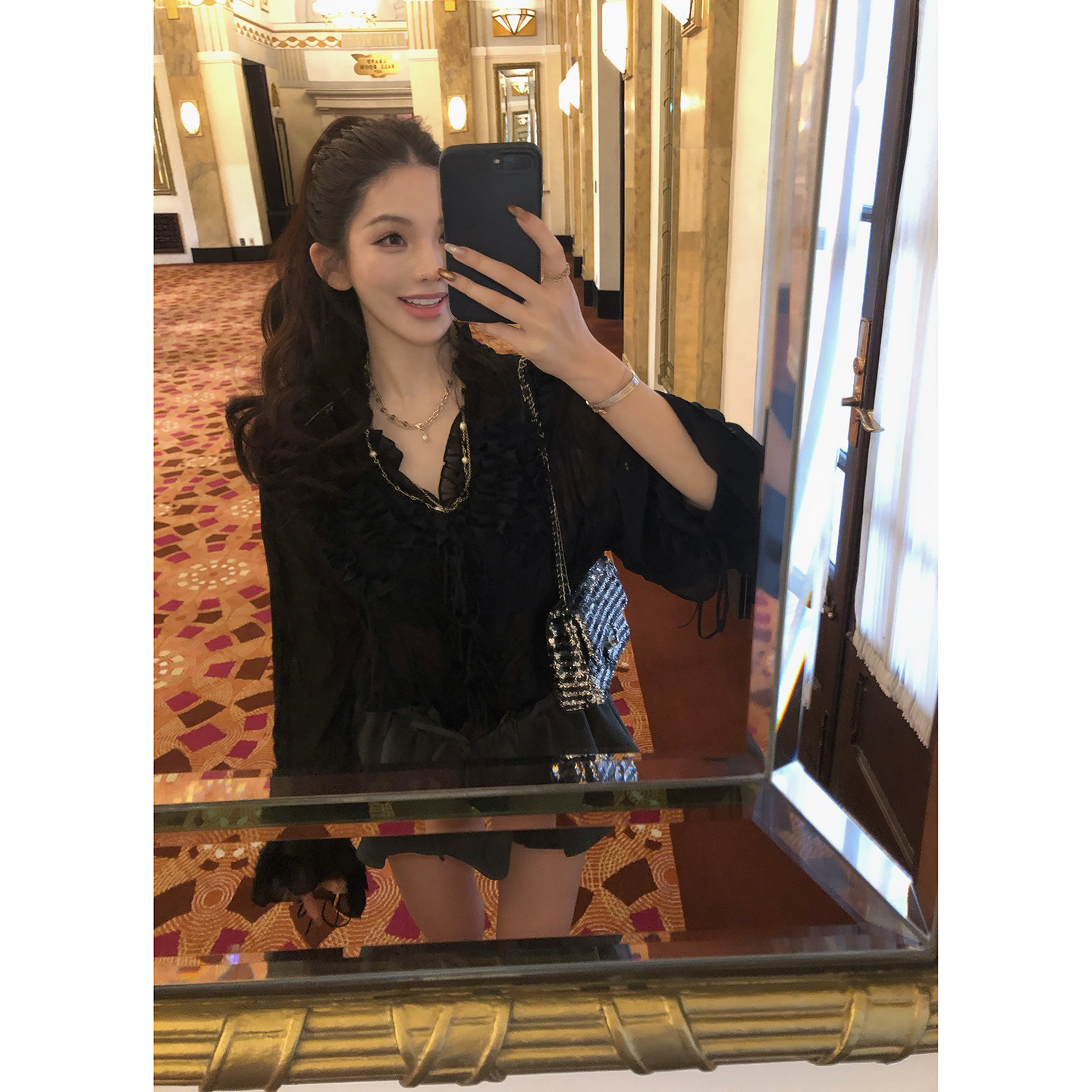 📚 PickRui睿哥 飘逸浪漫法式宫廷风木耳边衬衫女早春新款气质雪纺衫