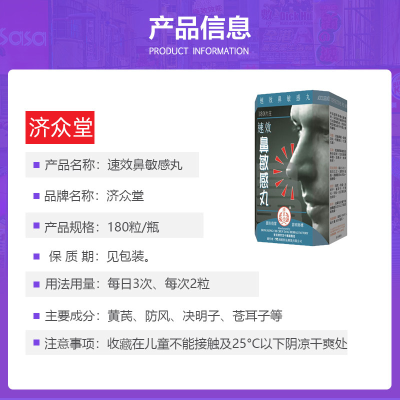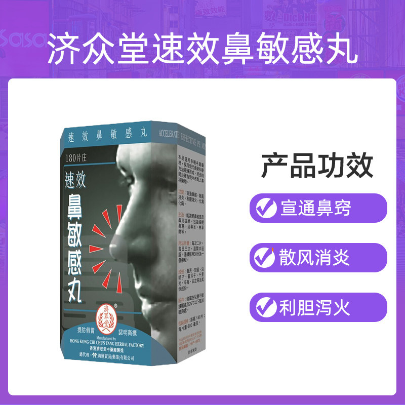 📚 香港济众堂速效鼻敏感丸180粒 急慢性鼻窦炎流涕鼻塞鼻炎特效药