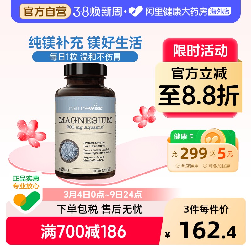 📚 Naturewise海洋镁元素补镁片镁补充剂非甘氨苏糖酸锌钾钙镁锌补钙