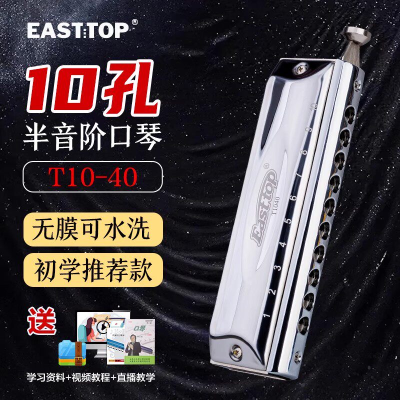 📚 EASTTOP东方鼎半音阶口琴无膜10孔40音入门学生练习演奏C调T10-40