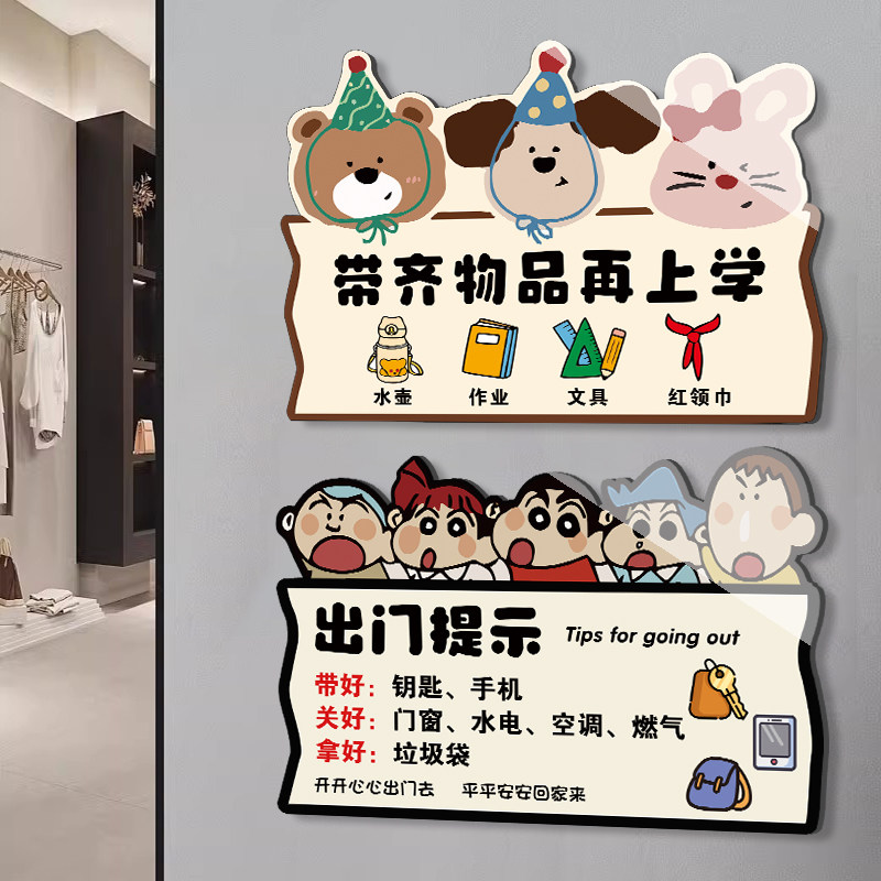 📚 出门提示牌磁吸上学出门提示牌出门温馨提示牌家用带齐物品再出门入户门装饰门内出门带手机带钥匙提示牌定制