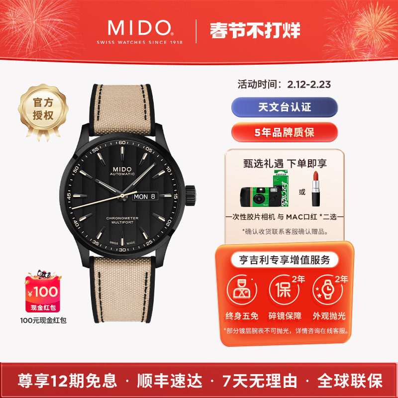 📚 Mido美度舵手系列天文台认证机械手表日内瓦波纹表盘时尚男士手表