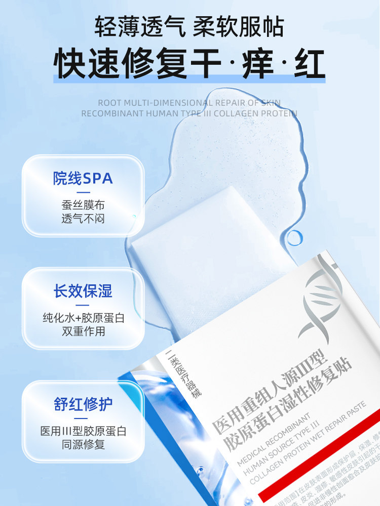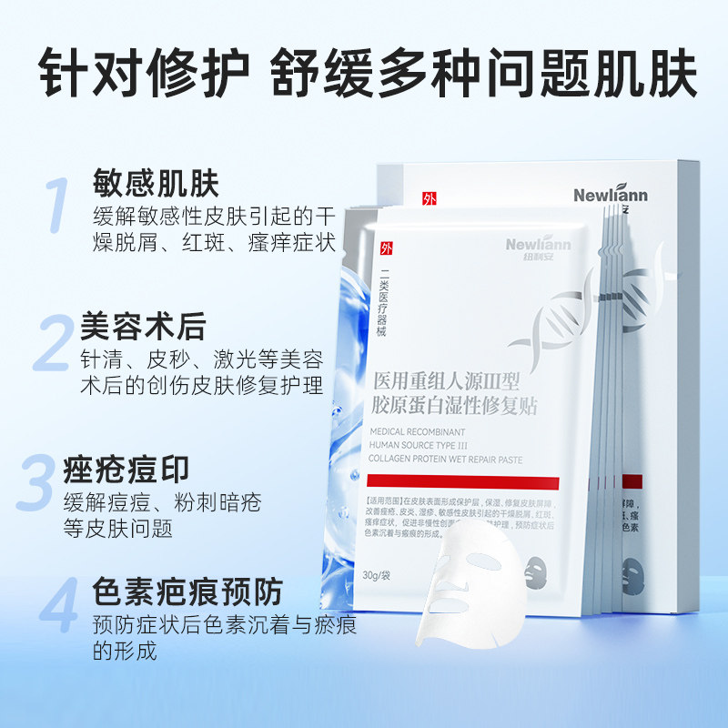 📚 医用重组Ⅲ型人源化胶原蛋白修复面膜型冷敷贴祛痘印医美械号敷料