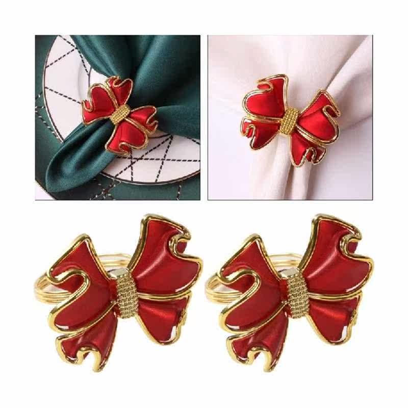 📚 12pcs Alloy Gold Red Bow Napkin Rings West Dinner Napkin