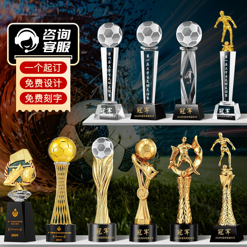📚 足球水晶奖杯定制作创意射手体育运动会比赛冠军奖品金球冠军